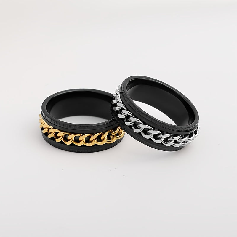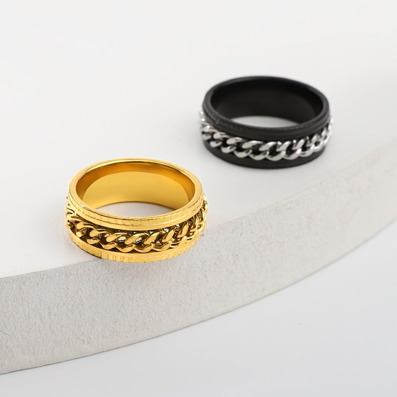 Rotatable Gear Chain Ring Stainless Steel Decompression Shaking Finger Ring