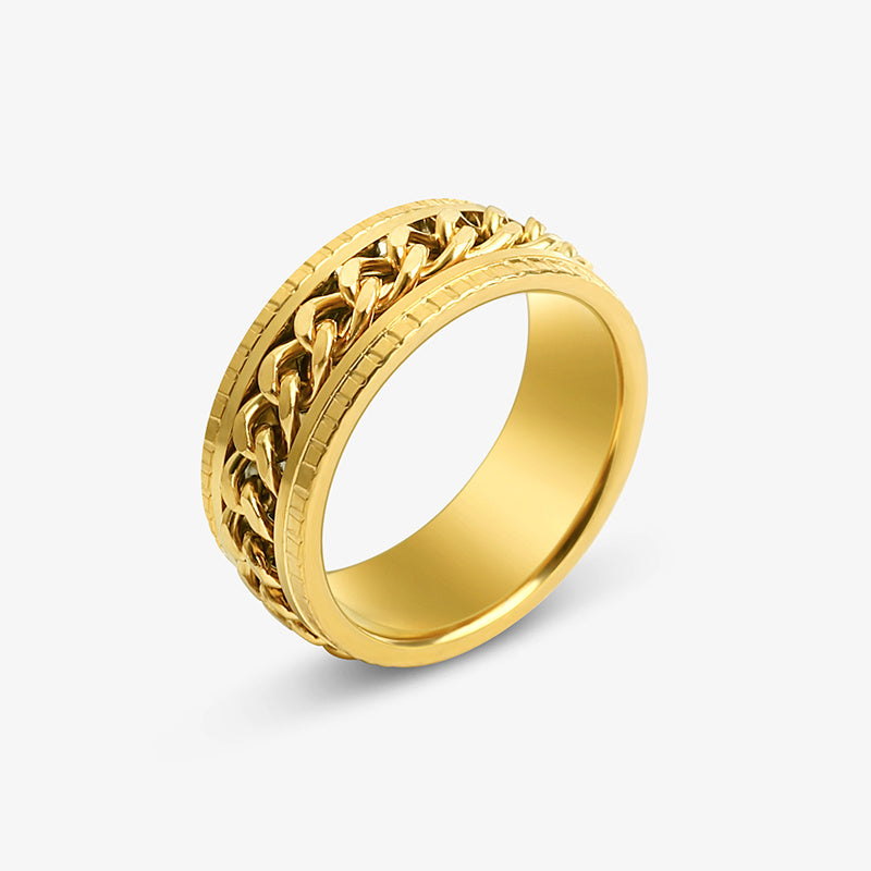 This unique finger ring features a rotatable gear chain design, made of stainless steel for durability. The gear printed pattern adds a touch of style, perfect for a trendy and fashionable look. Ideal for those who enjoy fidgeting and want a cool accessory.
