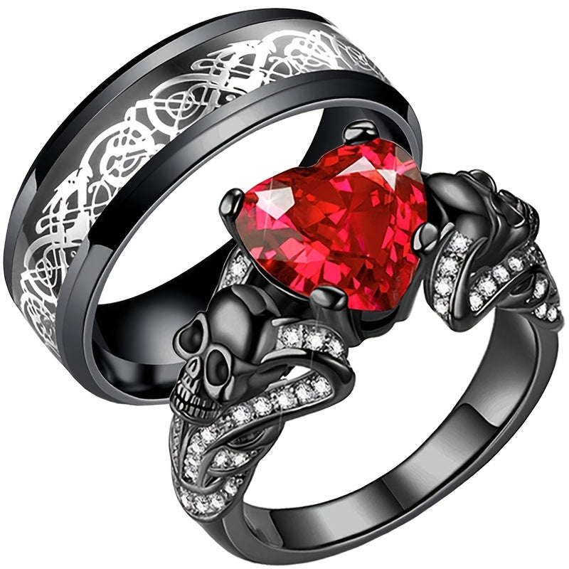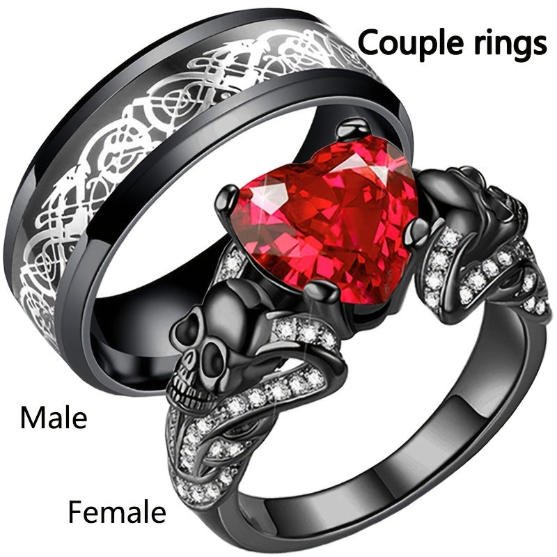Unleash your inner rebel with this skull couple ring set made of high-quality stainless steel. Perfect for punk and gothic style enthusiasts.