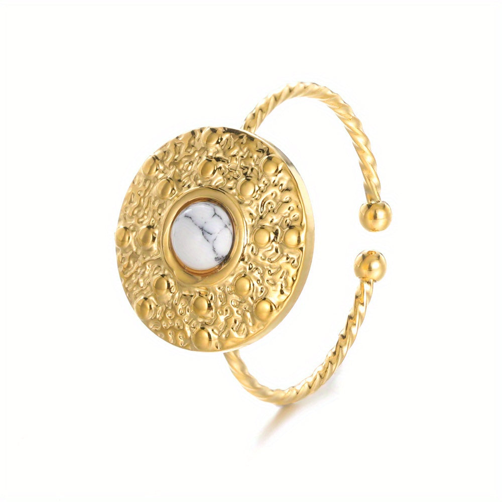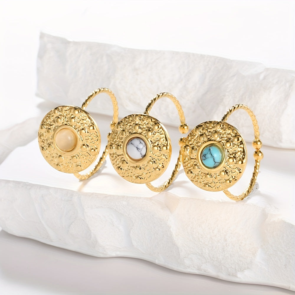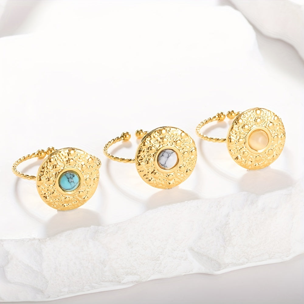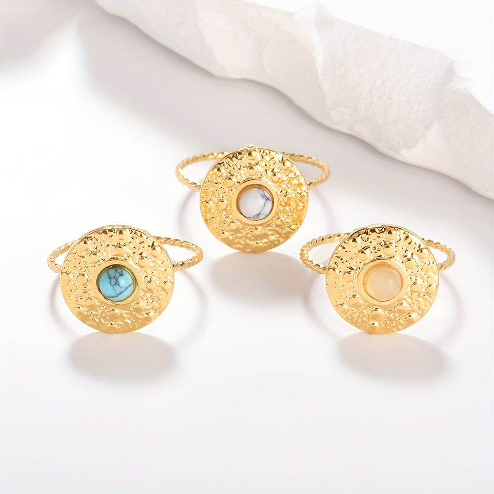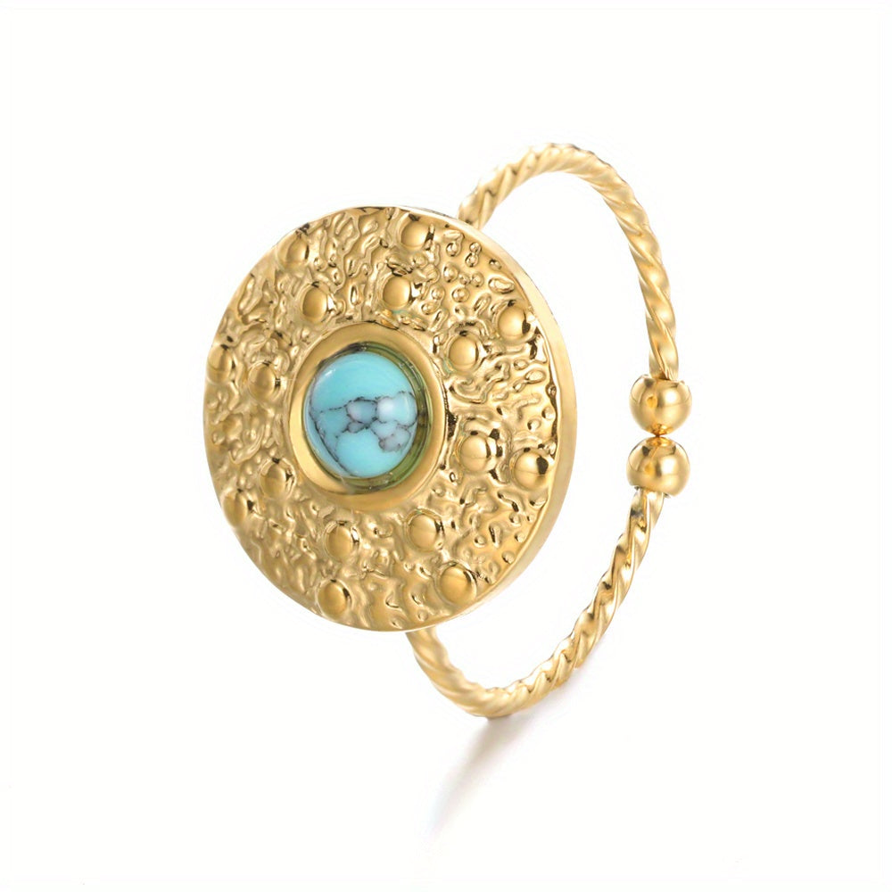 Stainless Steel 18k Plated Turquoise Ring Classic Plate Inlaid Round