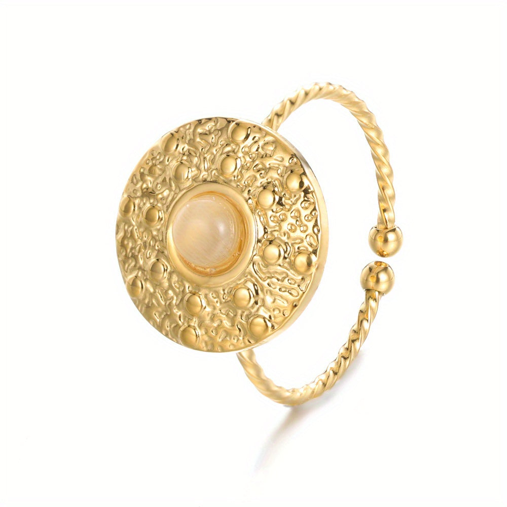 Add a touch of elegance to your daily outfits with this dainty ring. Made of stainless steel plated with 18k gold, featuring a classic plate design with a round turquoise stone in the middle. Perfect as a birthday gift for her.