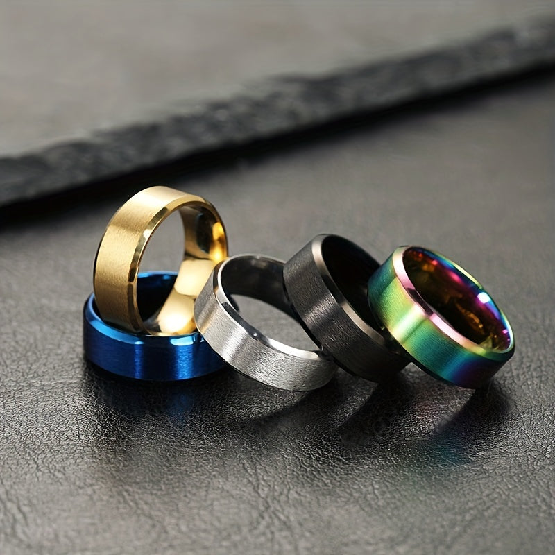 Stainless Steel Ring Matte Finish Beveled Polished Edge Comfort Fit