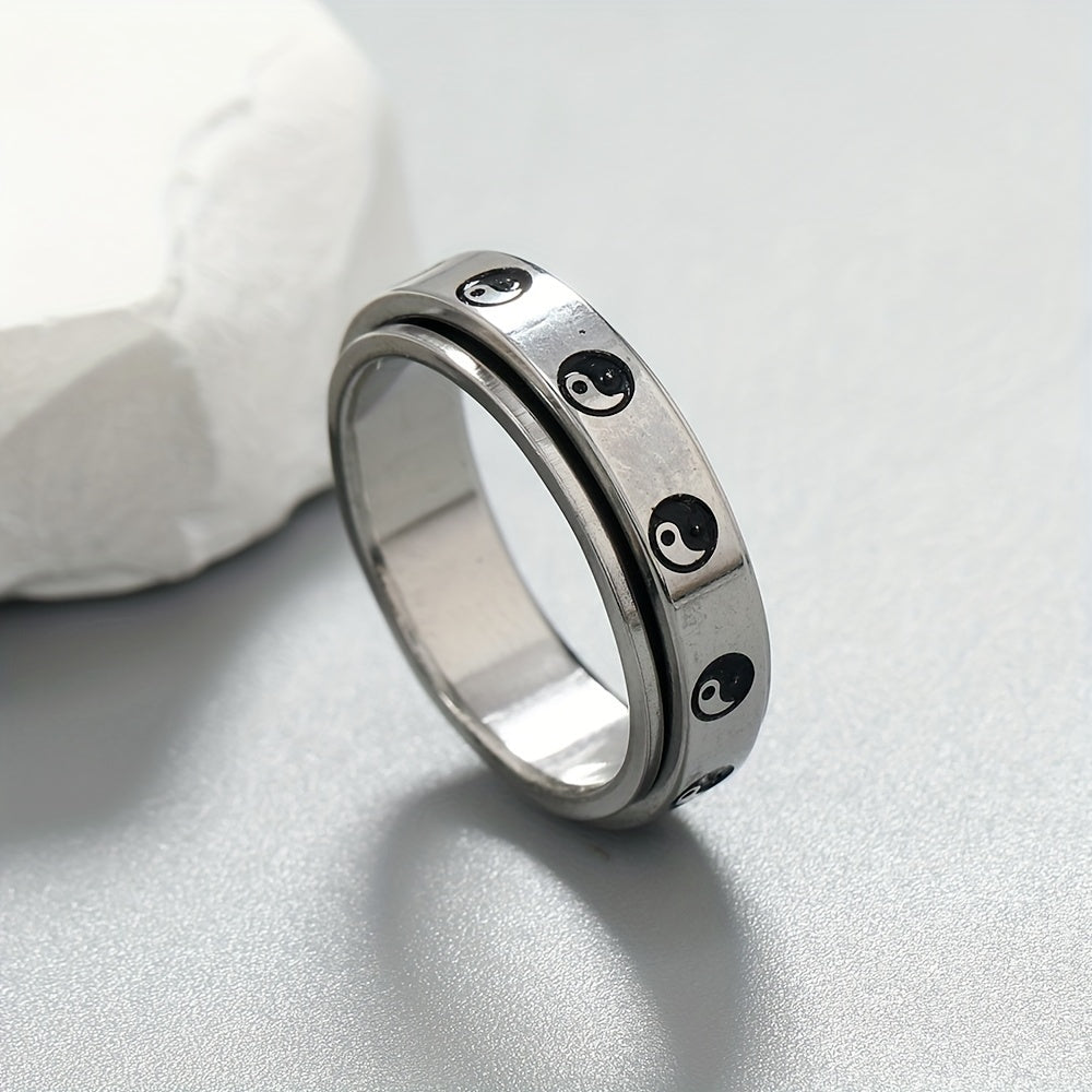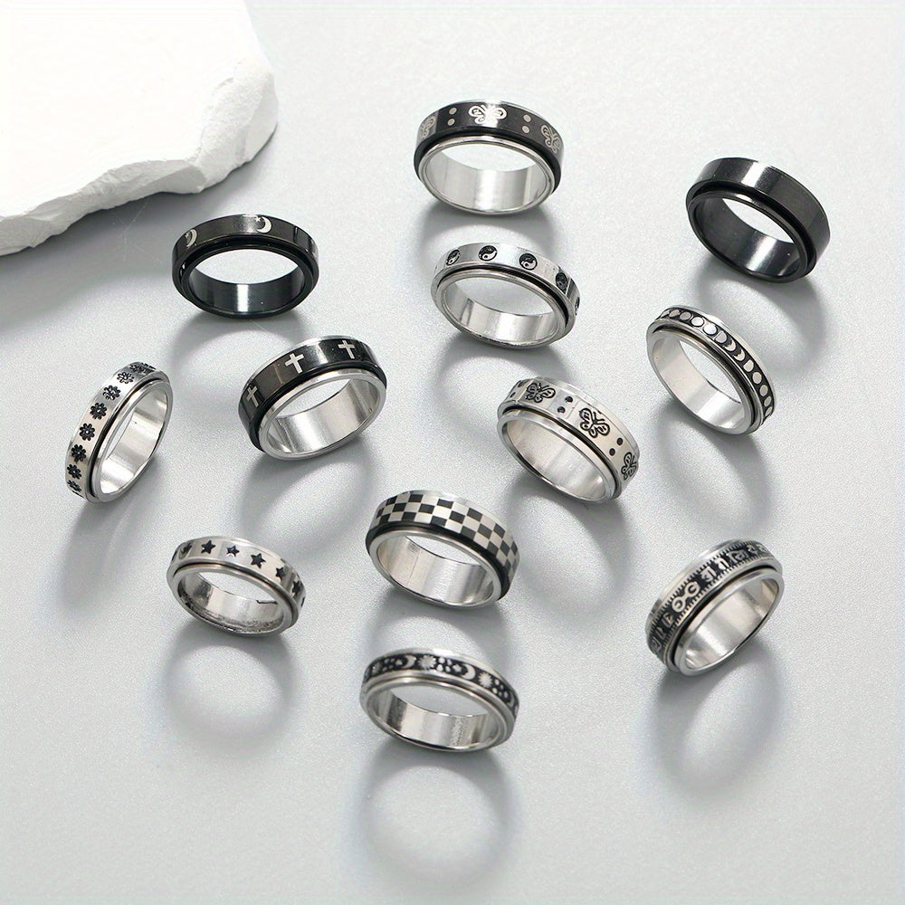 This stainless steel ring set features a unique design with a rotating element. It is perfect for men who appreciate stylish and distinctive jewelry.