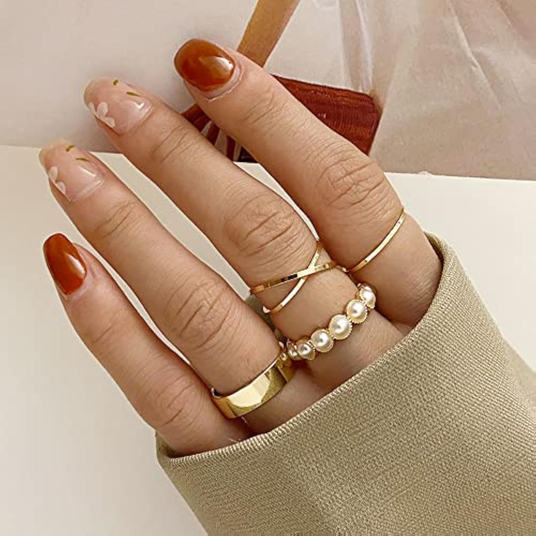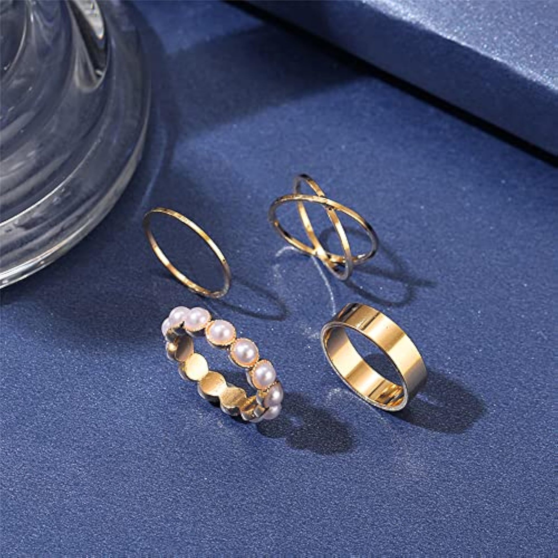 Enhance your boho style with this set of 4 midi finger rings. These stylish metal rings in golden color are perfect for any occasion.