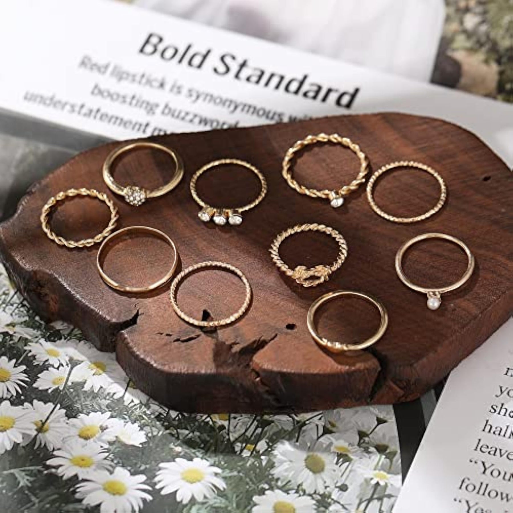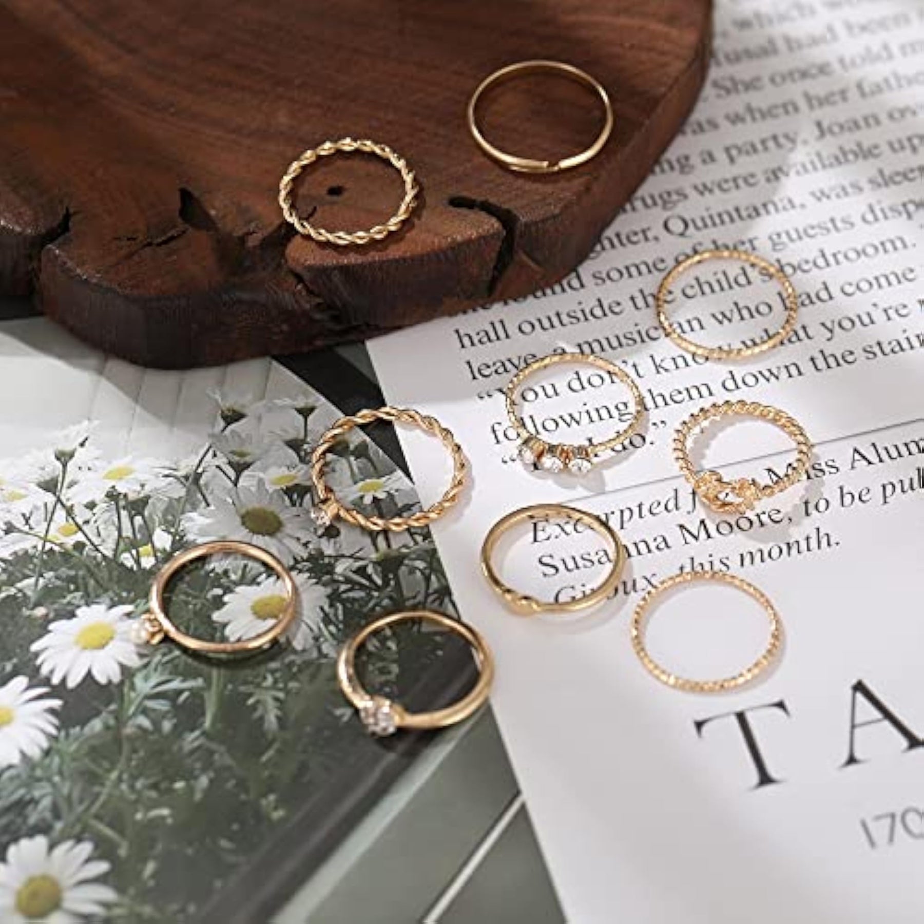Stylish Metal Boho Midi Finger Rings - Set of 10