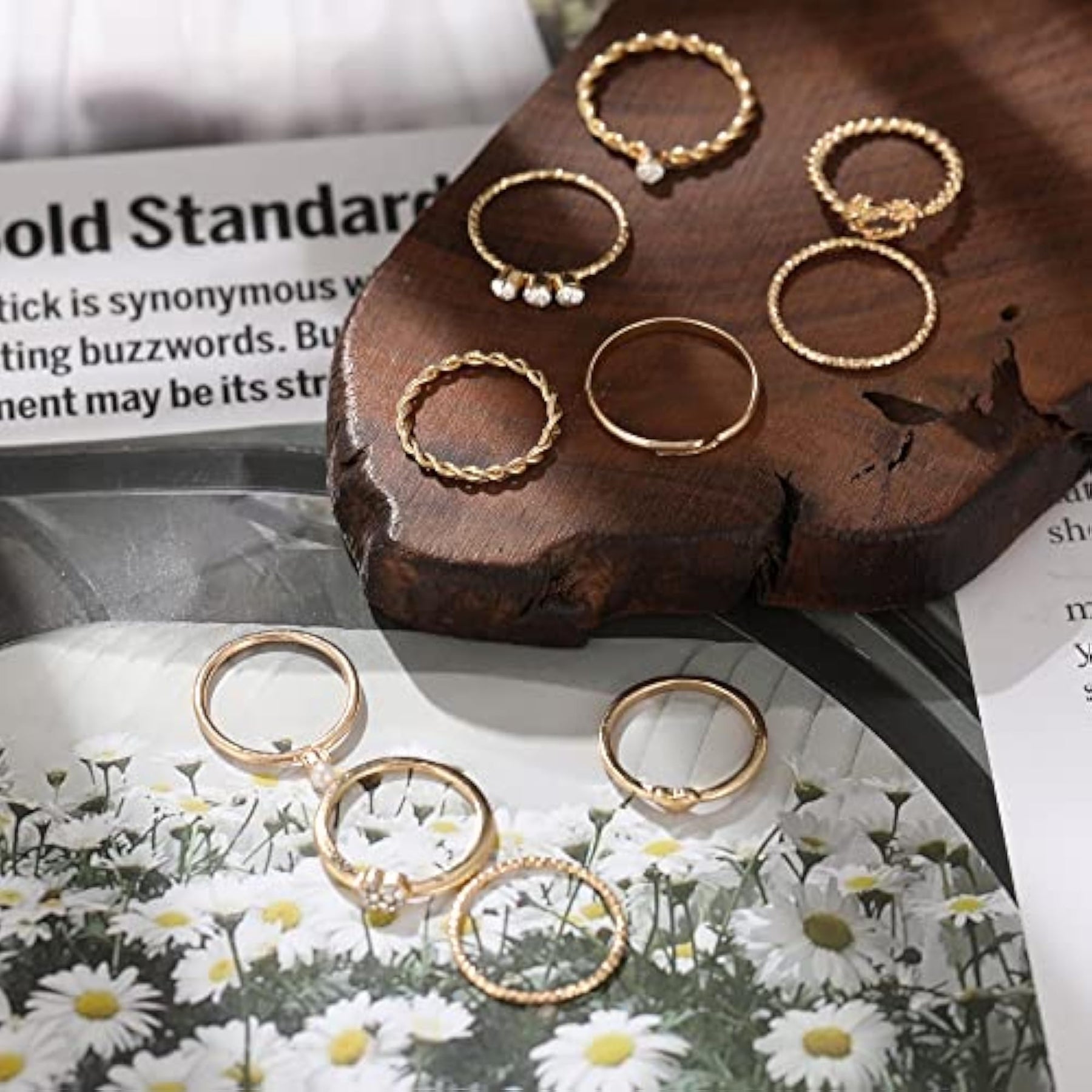 Enhance your style with this set of 10 stylish metal Boho midi finger rings. These rings are perfect for adding a touch of elegance to your look.