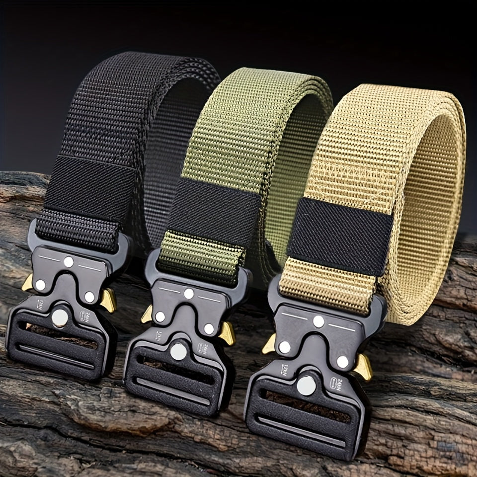 3pcs Men's Tactical Belts Canvas Adjustable Buckle Green Beige