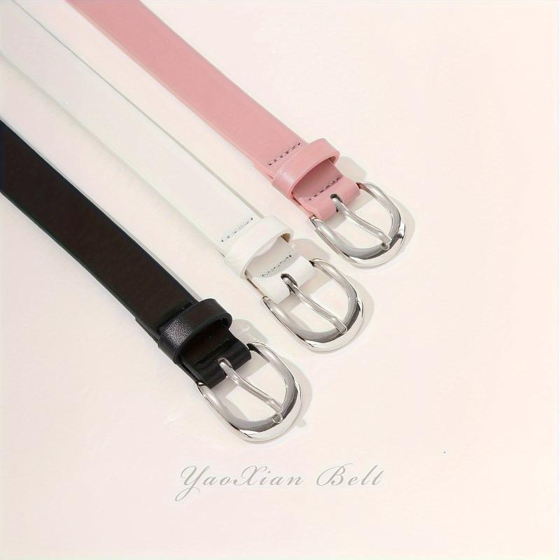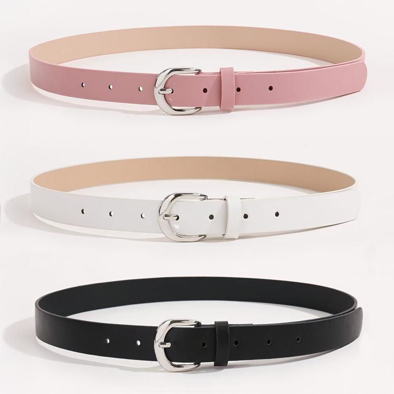 Elevate your outfit with these 3 stylish waist belts made of lightweight faux leather. Perfect for adding a preppy or formal touch to your attire.