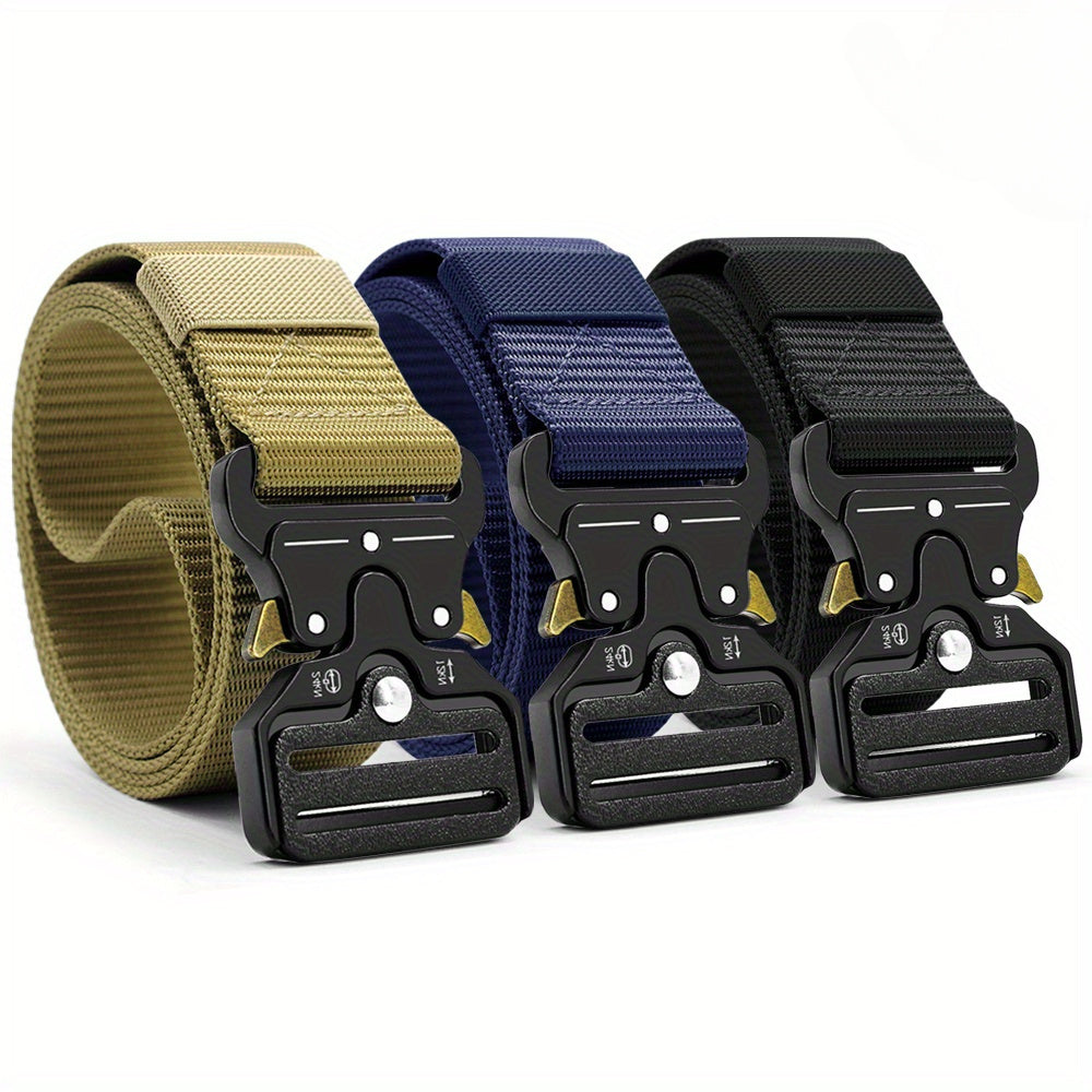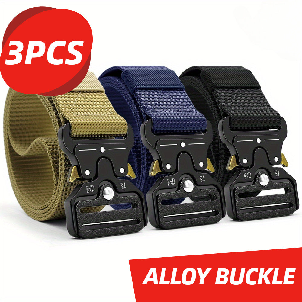 This set includes 3 heavy duty tactical belts with quick release alloy buckles and pendant. Made of durable nylon material, these belts are perfect for outdoor activities and everyday wear.