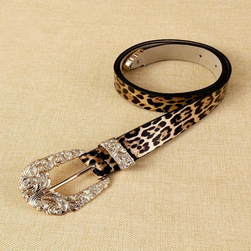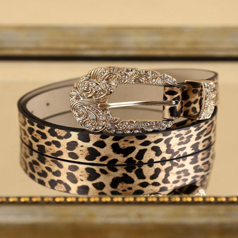 Add a touch of bohemian charm to your casual outfit with this stylish faux leather belt featuring a leopard print design and a luxurious golden tone alloy buckle.