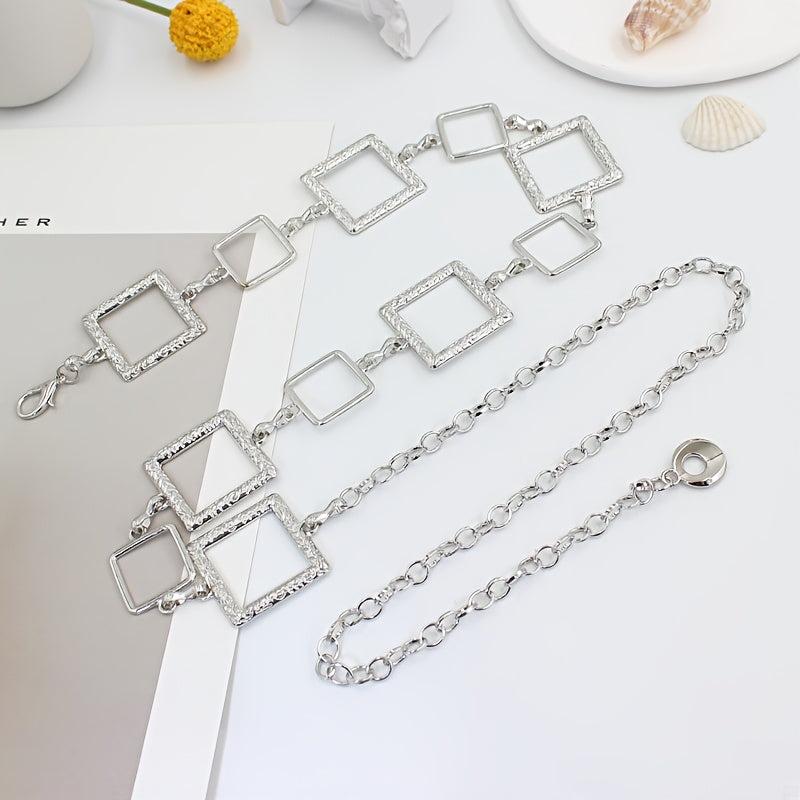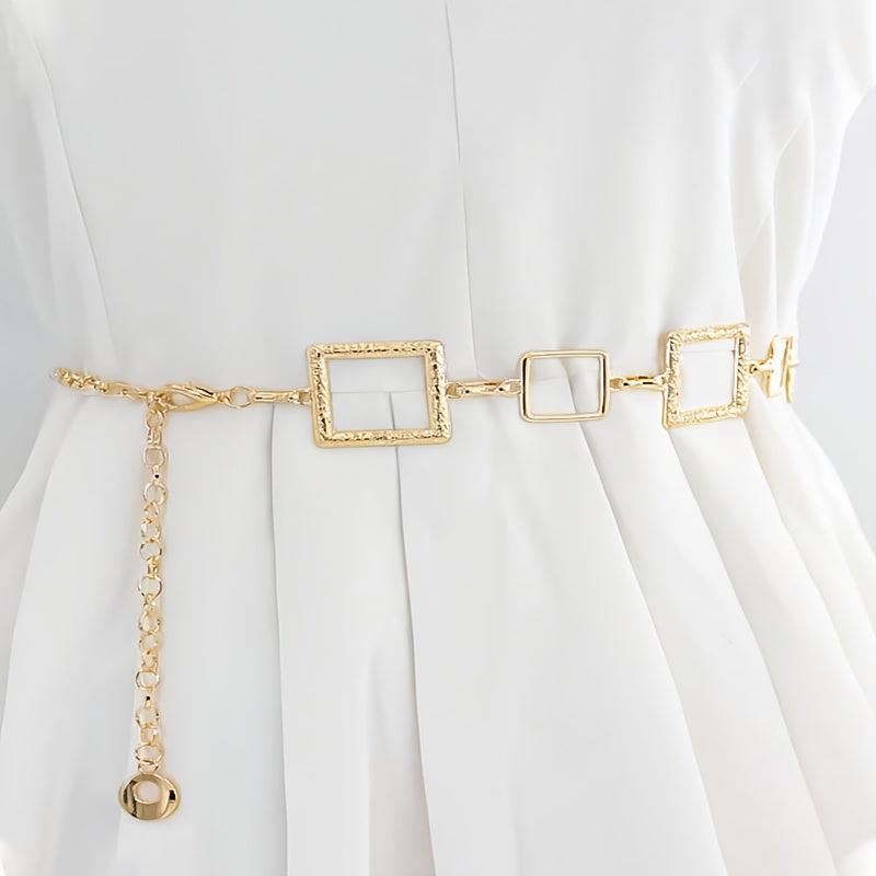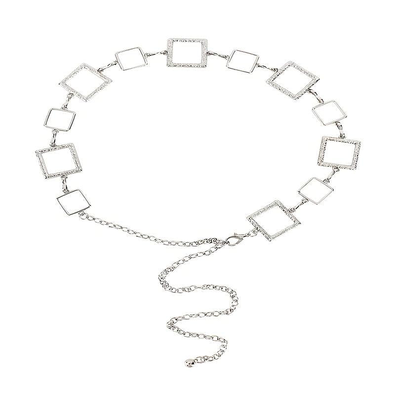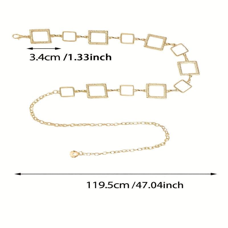 Elevate your outfit with this bohemian-inspired metal waist belt. Perfect for parties, weekend casual, and daily commute. Features a stainless steel buckle and hollow design.