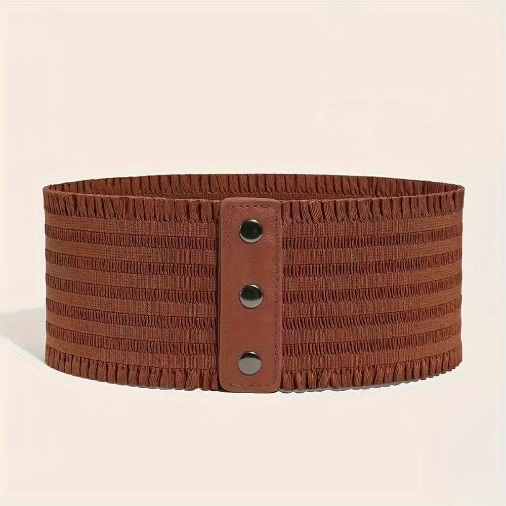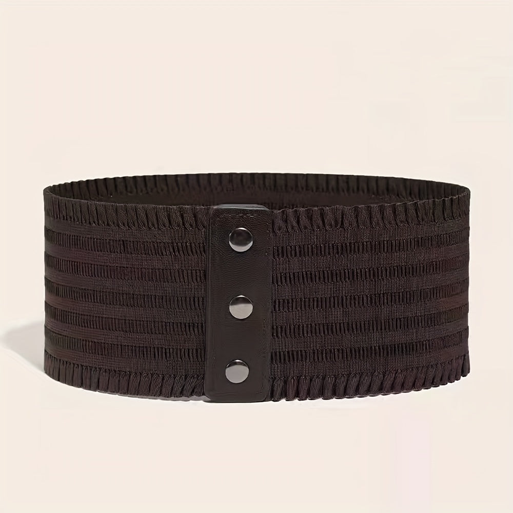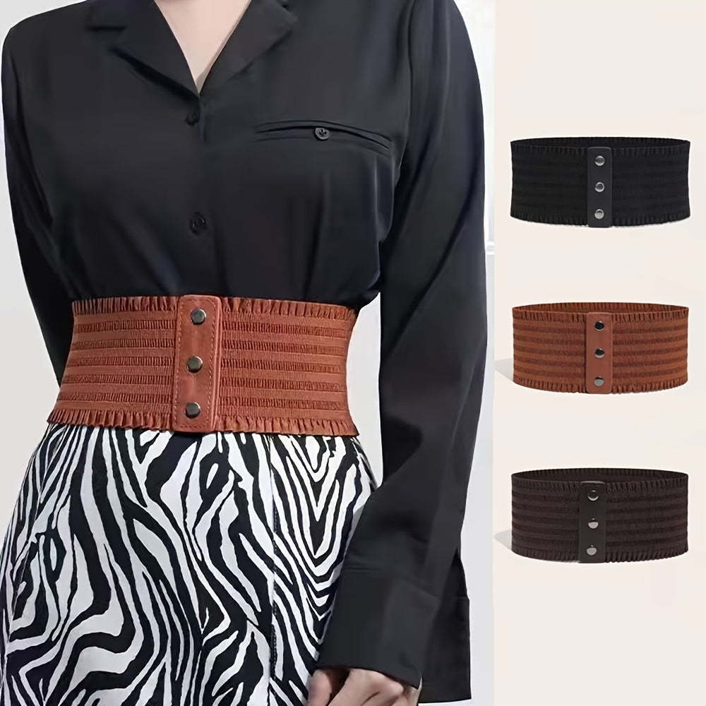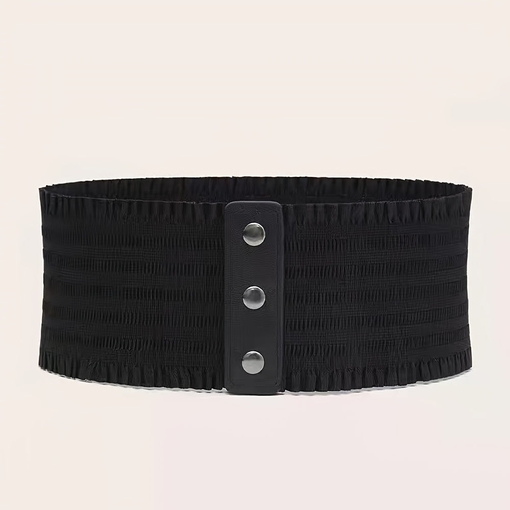 This elastic wide waist belt with a trendy buckle is perfect for mature women who want a casual yet stylish accessory. Made for comfort and fashion.