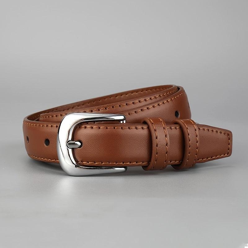 Elevate your style with this stylish and versatile faux leather belt in brown. The high-end design is perfect for pairing with jeans.