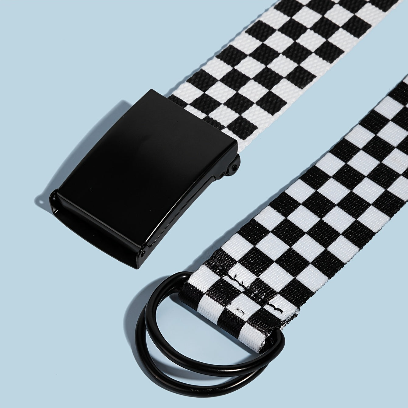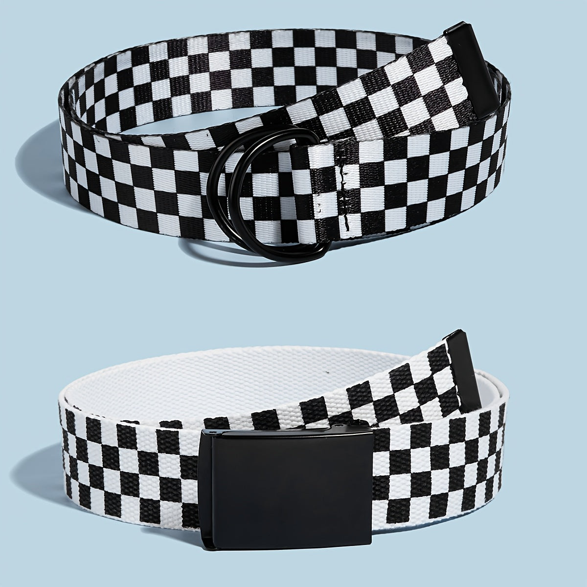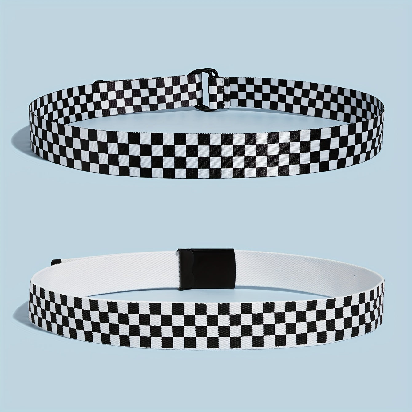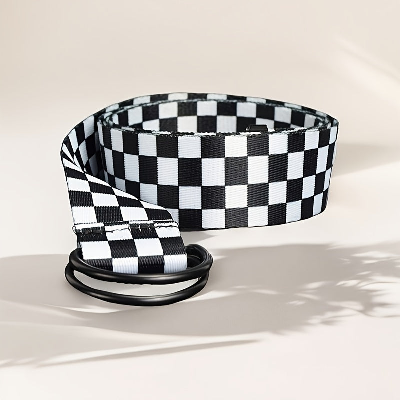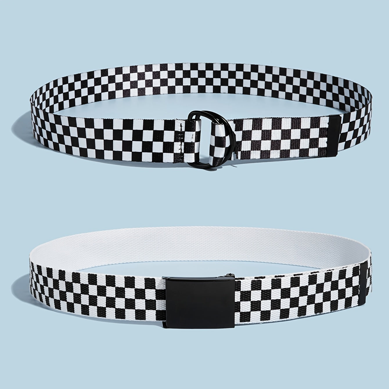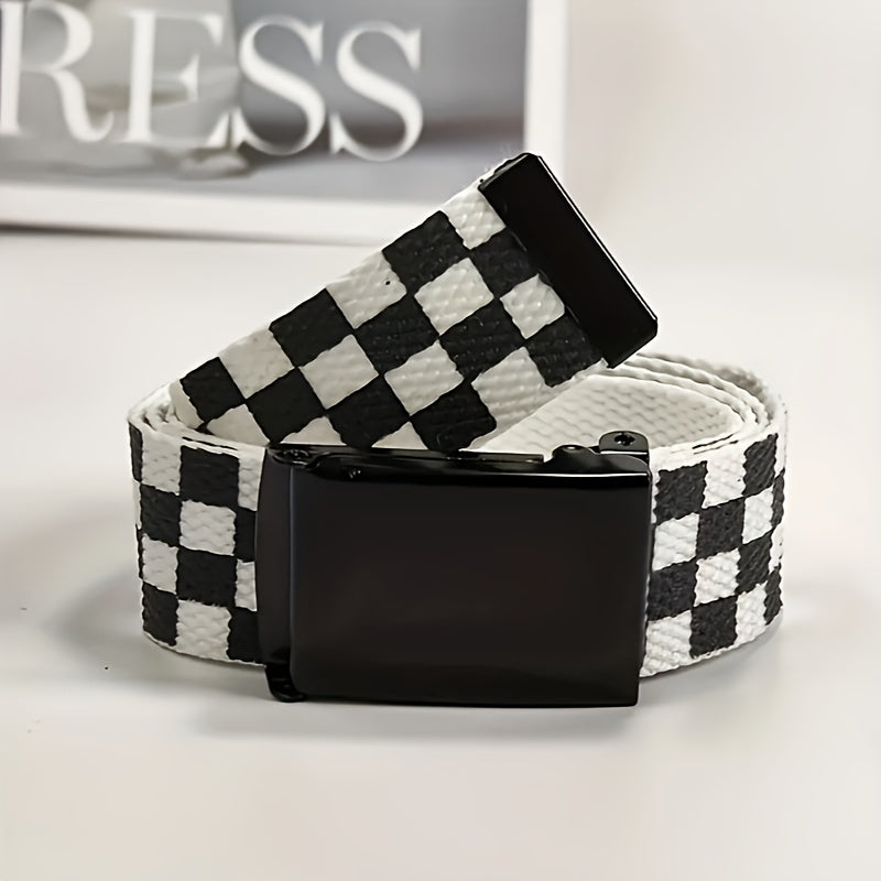 This versatile canvas belt features a trendy checkered pattern and is perfect for various occasions such as dates, parties, and college. Available in size S.
