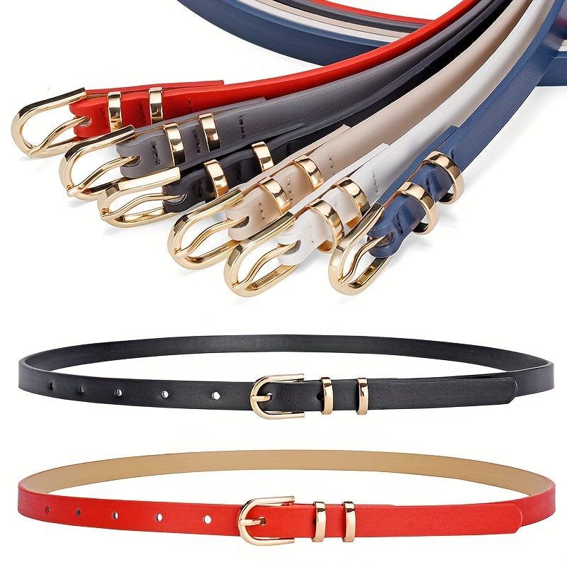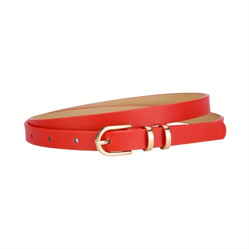 This women's slim belt features a stylish hand-stitched needle buckle, perfect for pairing with skirts and coats.