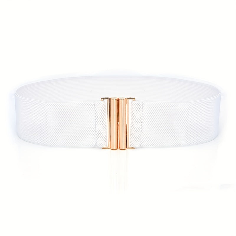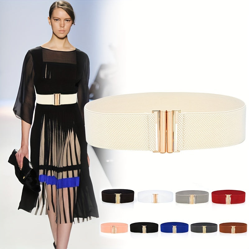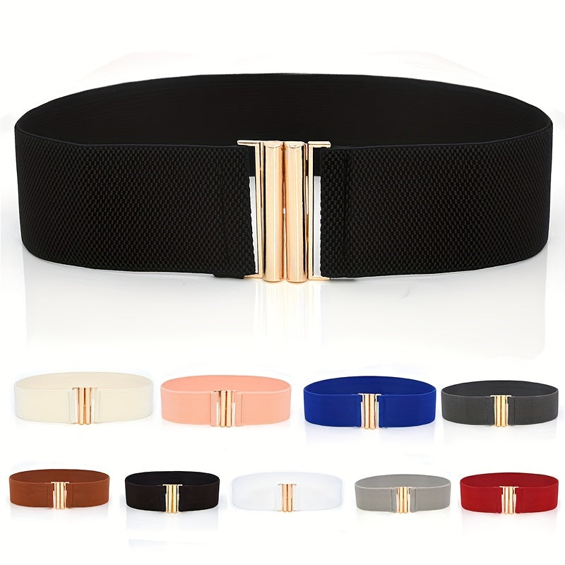 Upgrade your outfit with this solid elastic wide belt featuring a classic golden buckle. Perfect for adding a touch of style and shaping your silhouette.