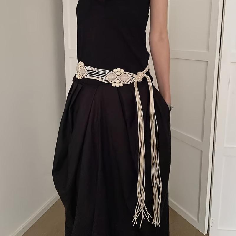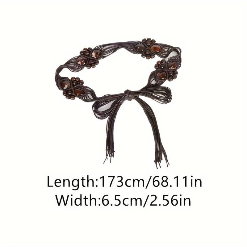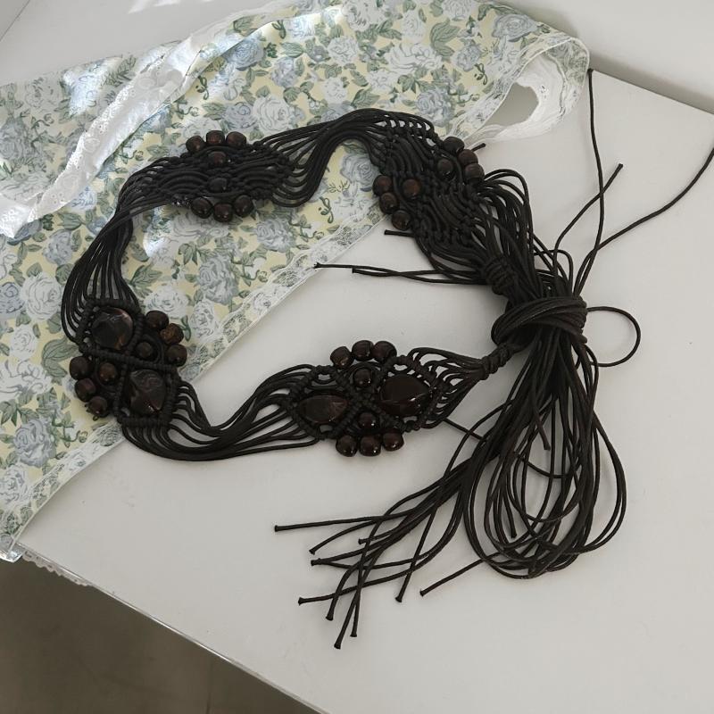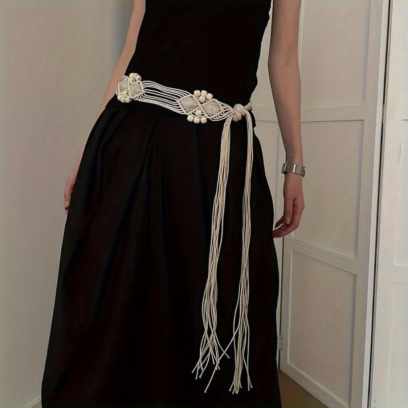 Add a touch of ethnic style to your outfit with this braided waist rope featuring beaded accents. This thin belt brings a sense of unique fashion to any look.