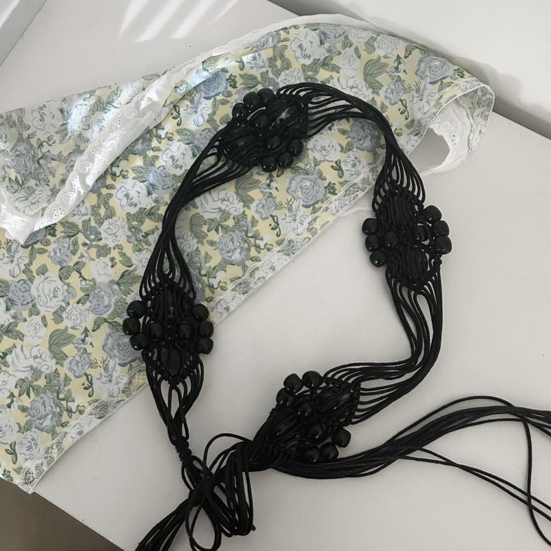 Ethnic Style Braided Waist Rope Beaded Sense Accessories Waist Thin Belts