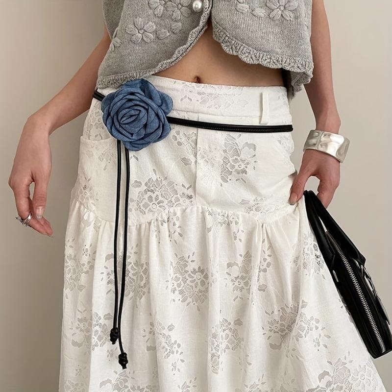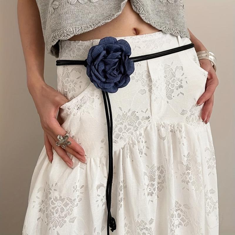 Add a touch of vintage charm to your outfit with this lovely French flower belt featuring delicate rose flower design. It's a perfect accessory for a sweet and romantic look.