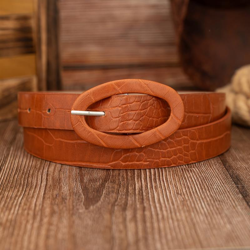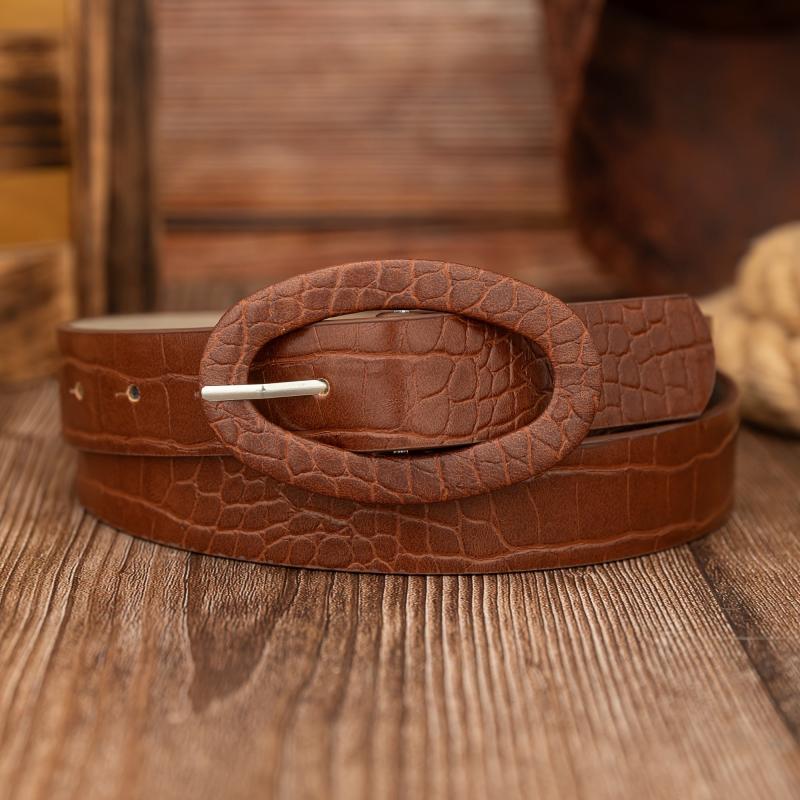 Elevate your style with this unisex retro belt featuring an oval embossed pattern and adjustable metal buckle. Perfect for casual, office, and evening wear to add a touch of style to your everyday look.