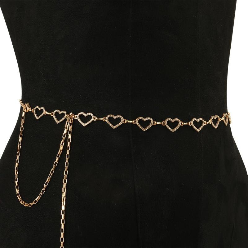 Elevate your look with this fashionable golden tone heart shaped cut out waist belt. It is a versatile and stylish accessory that is perfect for casual outings.