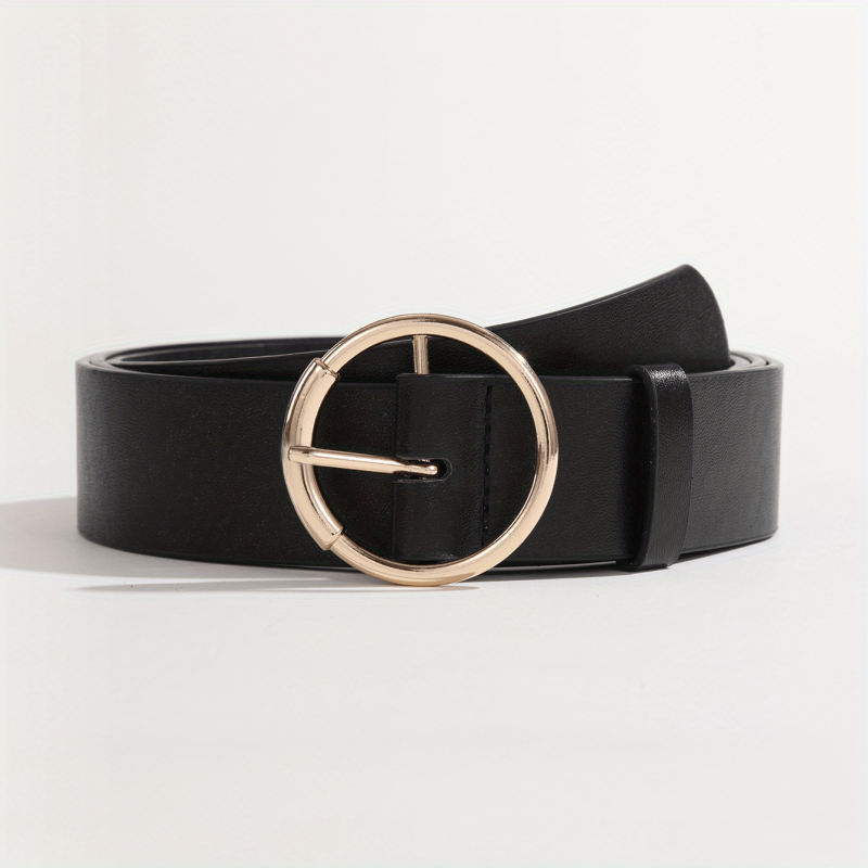 Golden Round Pin Buckle Belt Classic PU Belt Jeans Pants Waistband Girdle