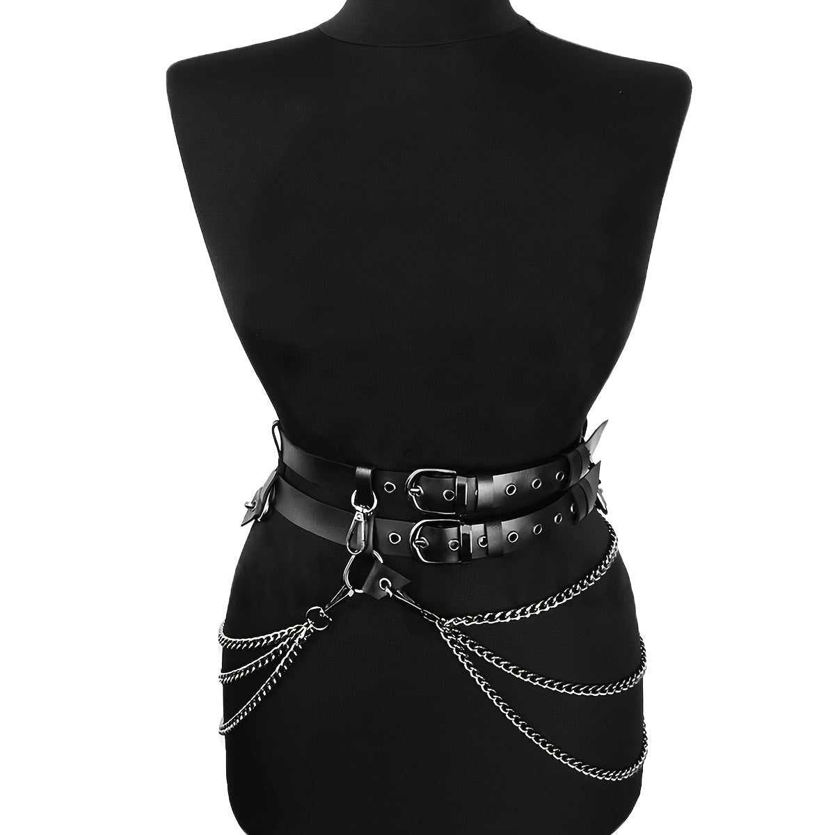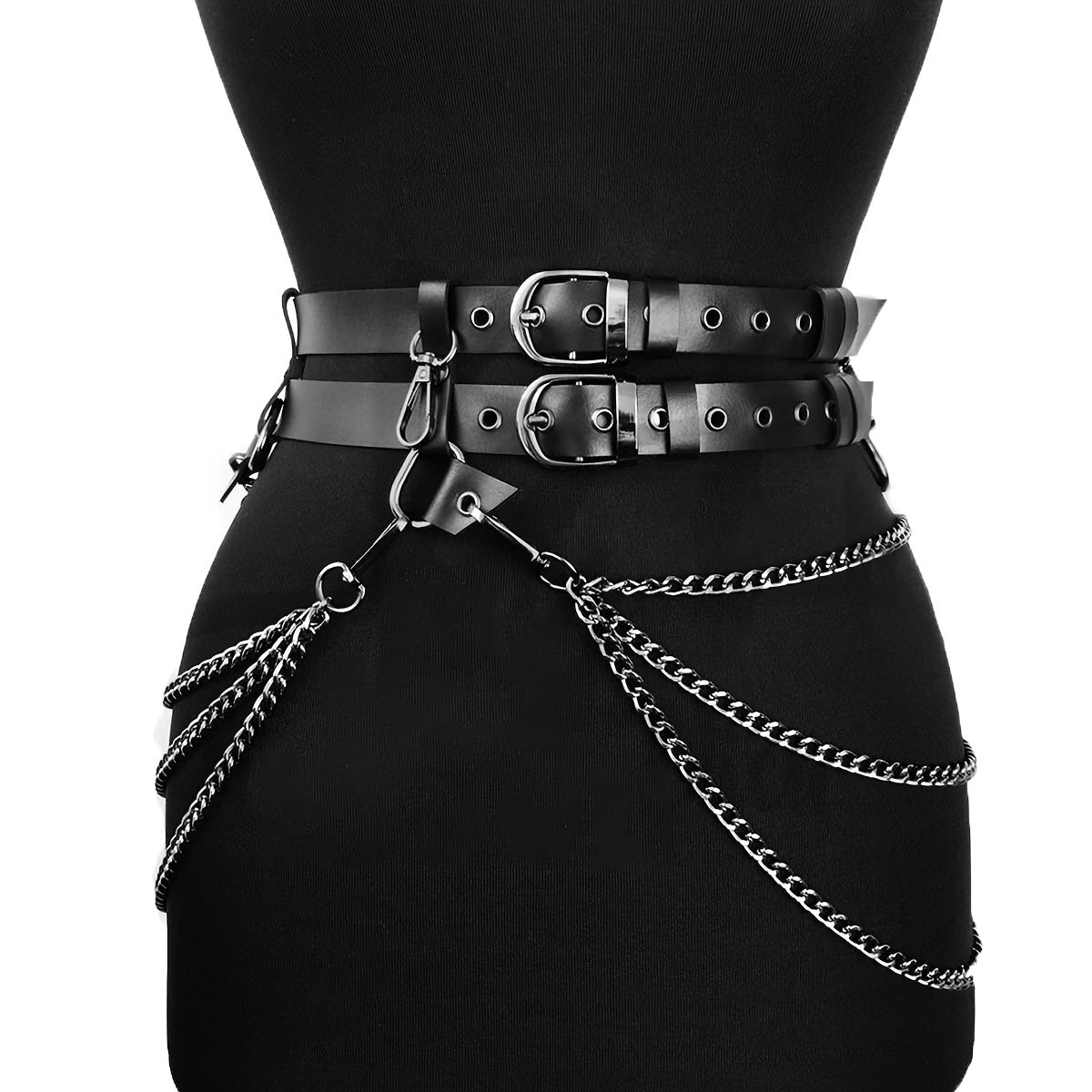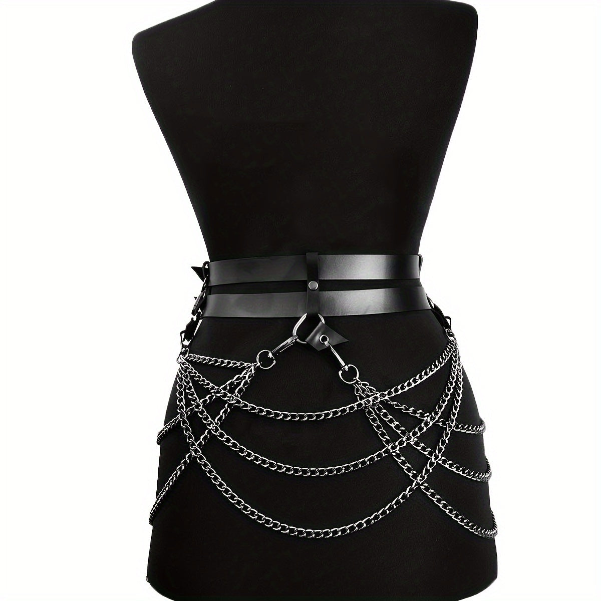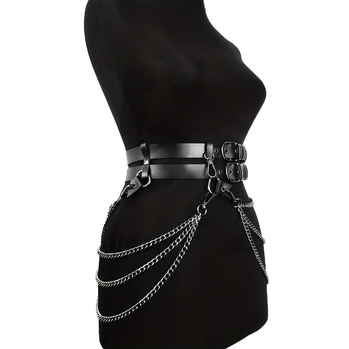 Women's PU leather waist accessory featuring chain detailing and tassels, perfect for casual or party wear.