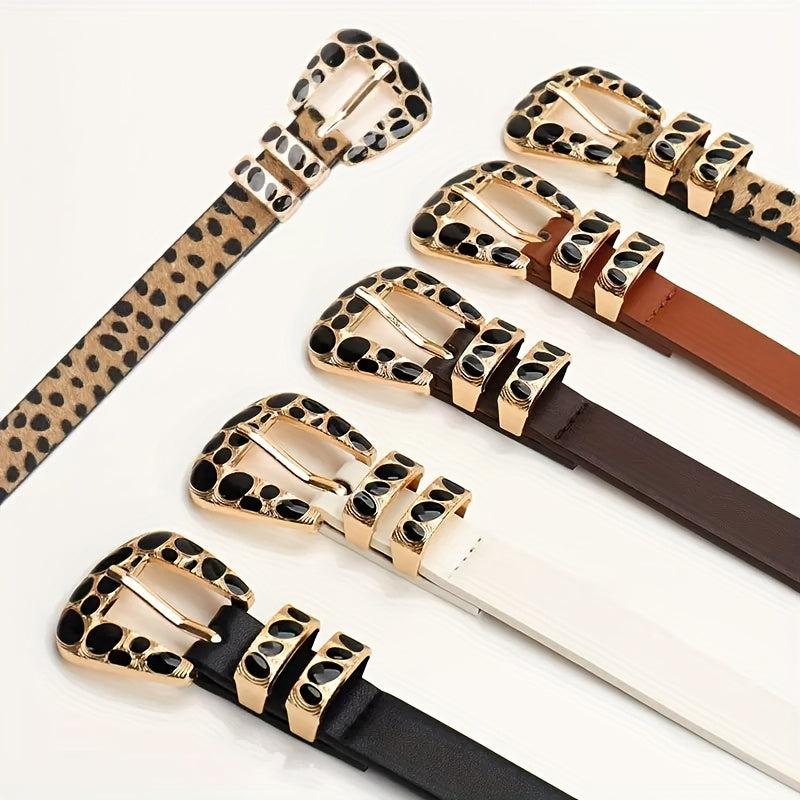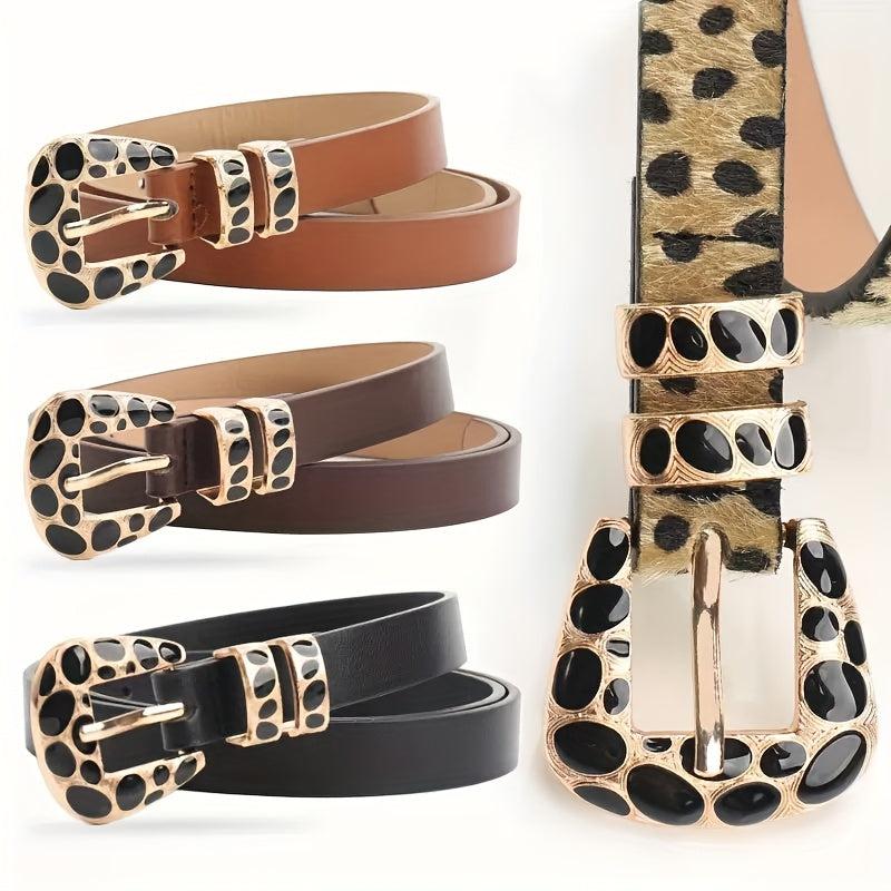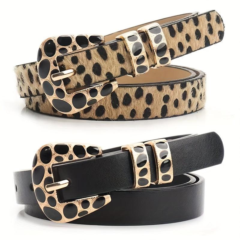 Leopard Print Belt with Alloy Buckle for Jeans