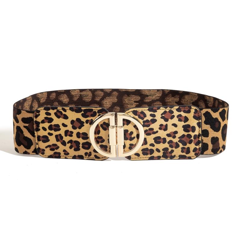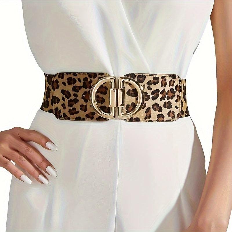 Leopard Print Elastic Waist Belt for Women with Symmetrical Buckle
