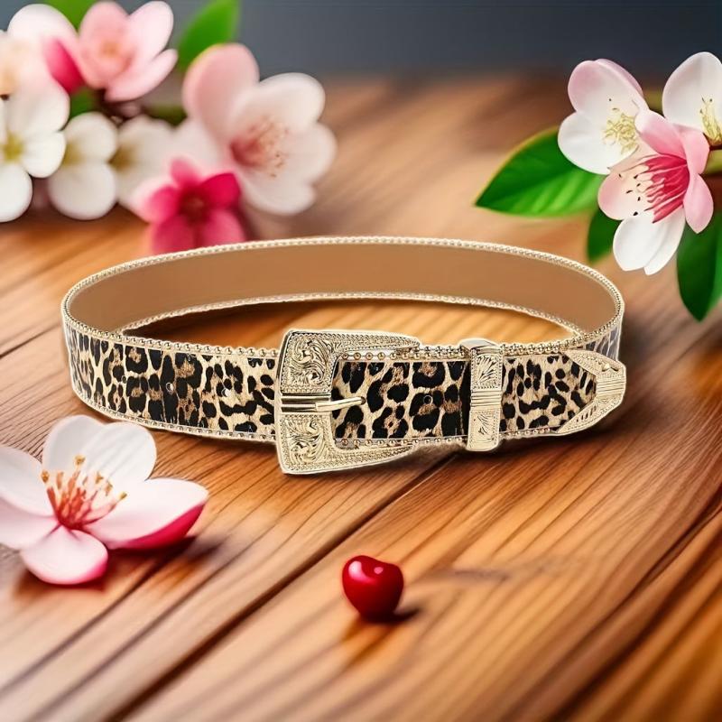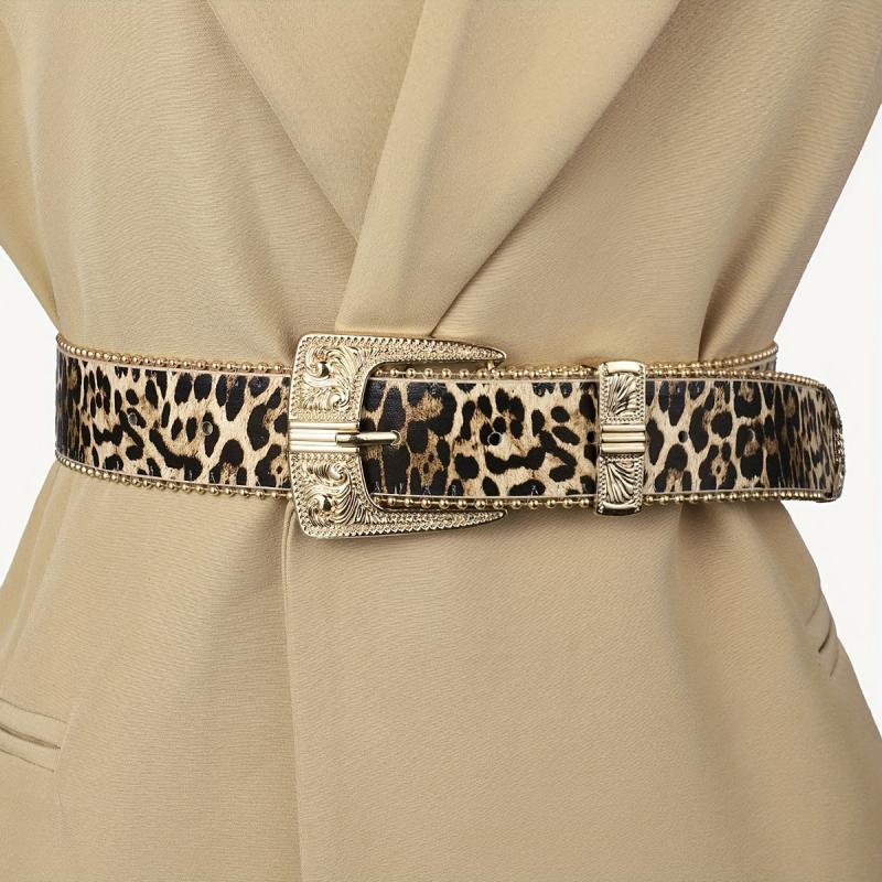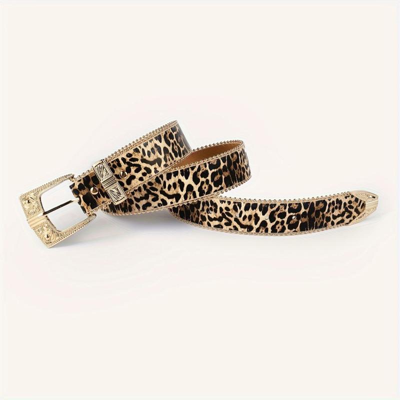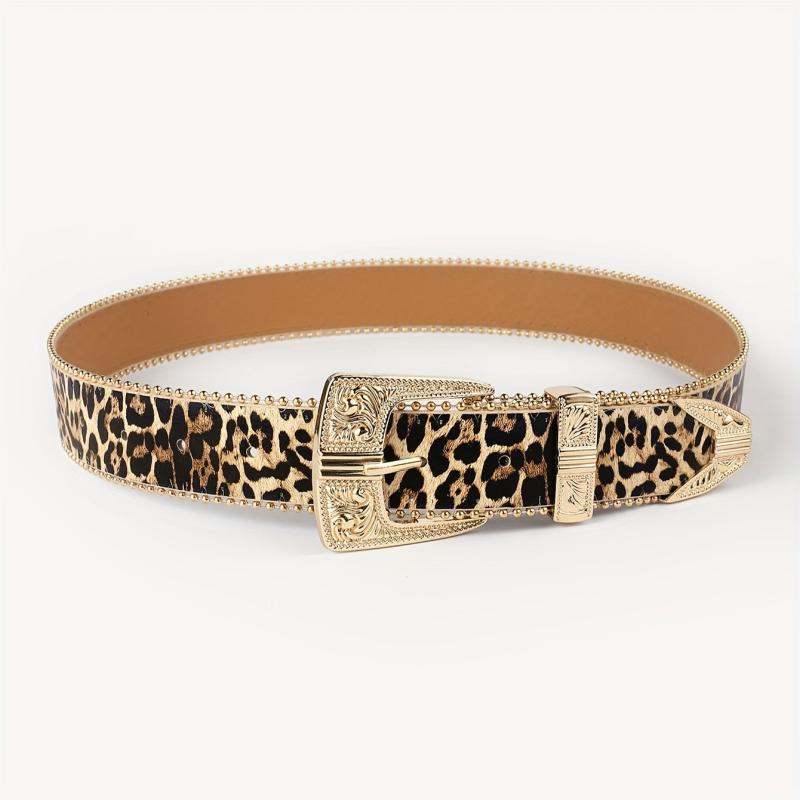Leopard Print Faux Leather Belt w/ Golden Buckle Casual Accessory