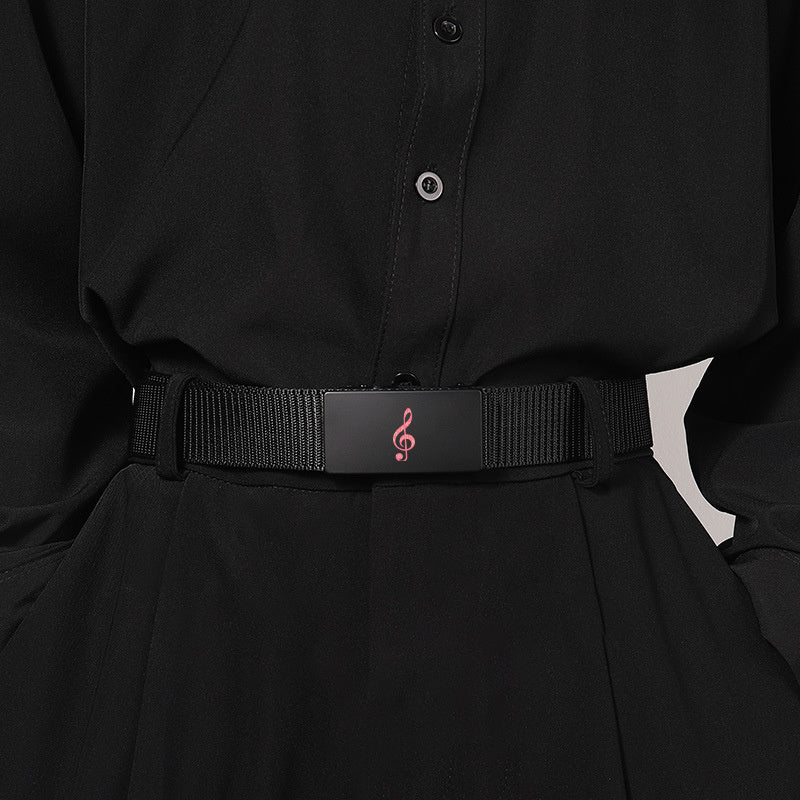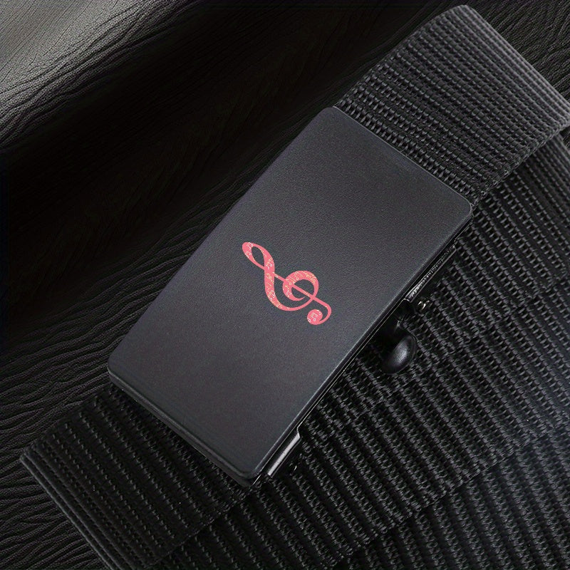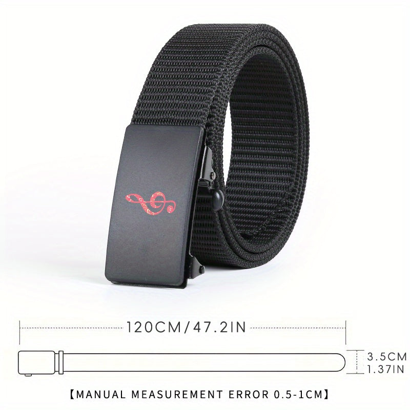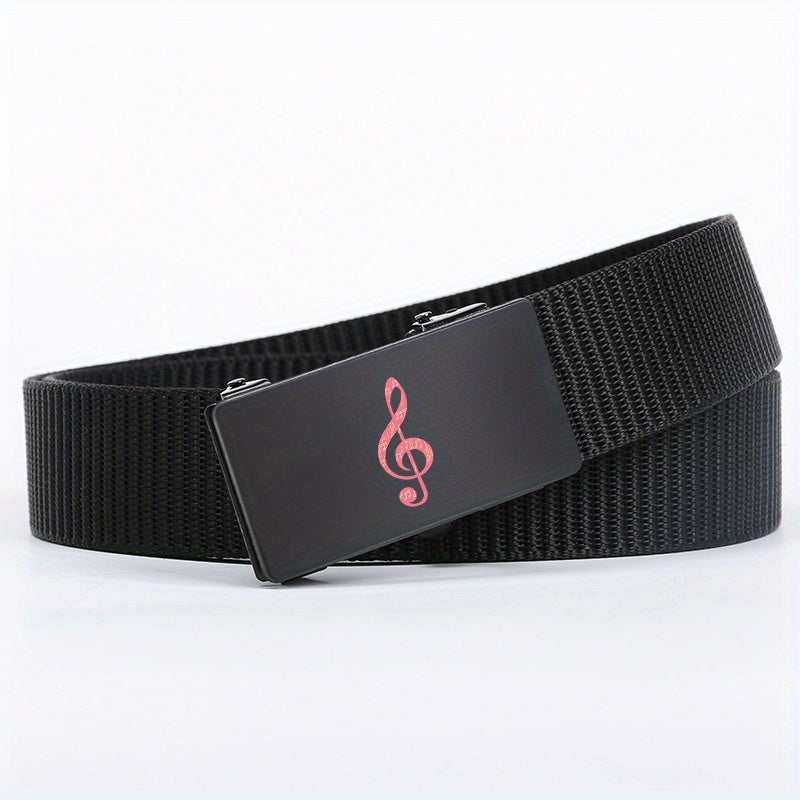 This men's woven belt features a music note pattern and an automatic alloy buckle. Made of durable polyester fiber, it is a versatile accessory suitable for daily wear and business attire. Ideal gift for casual occasions.