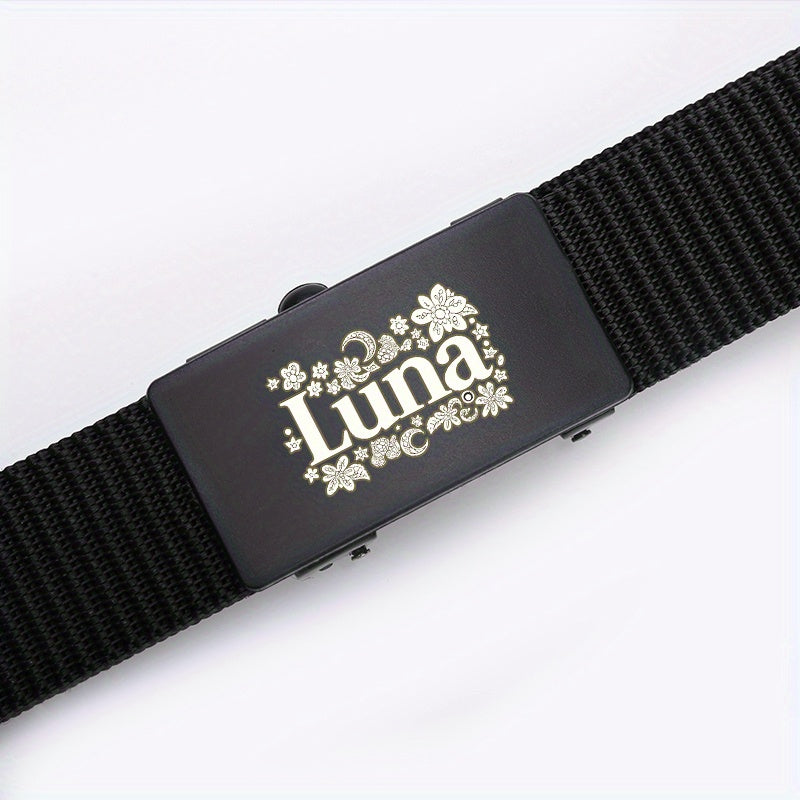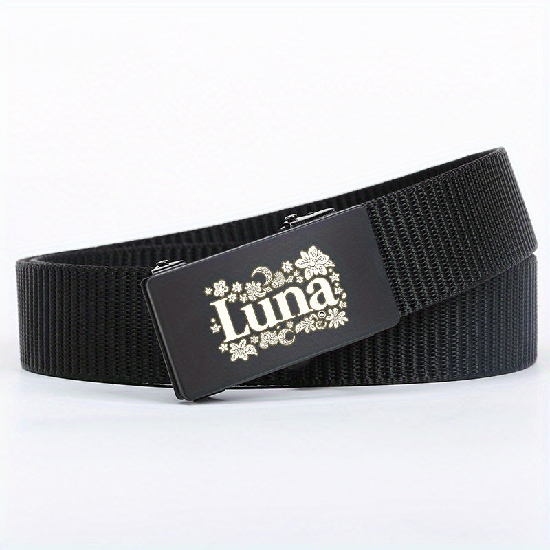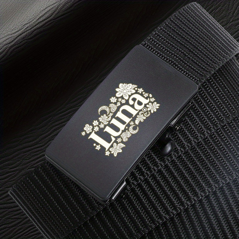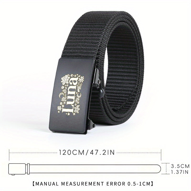 Men's Letter Pattern Woven Auto Buckle Belt for Daily & Business Wear
