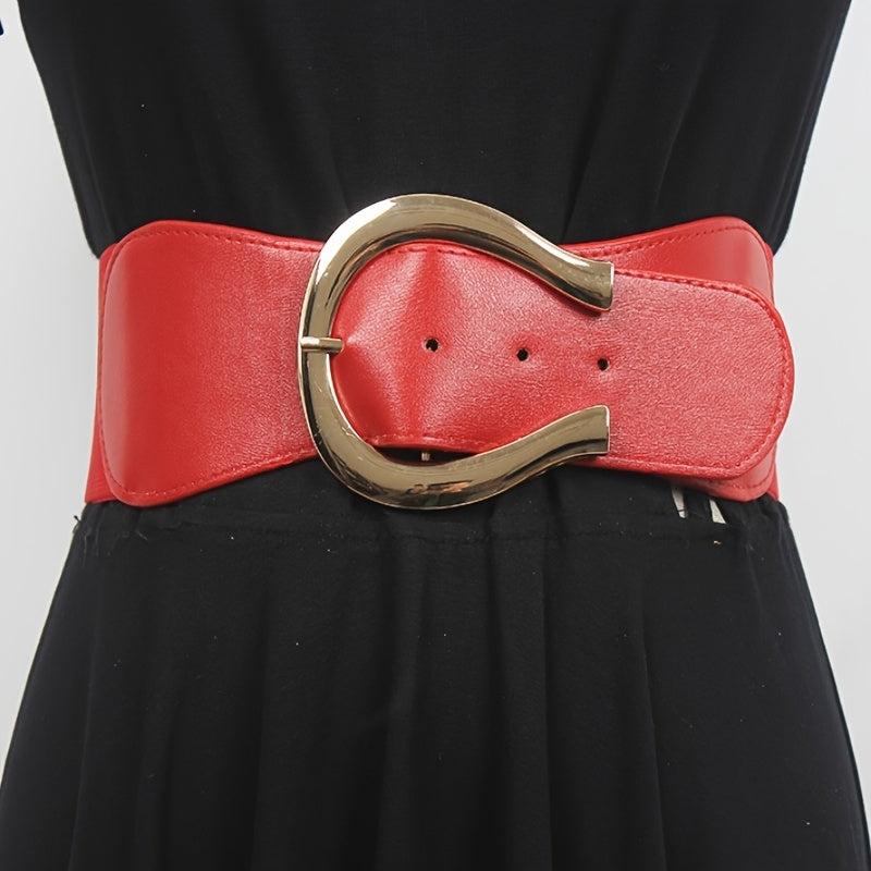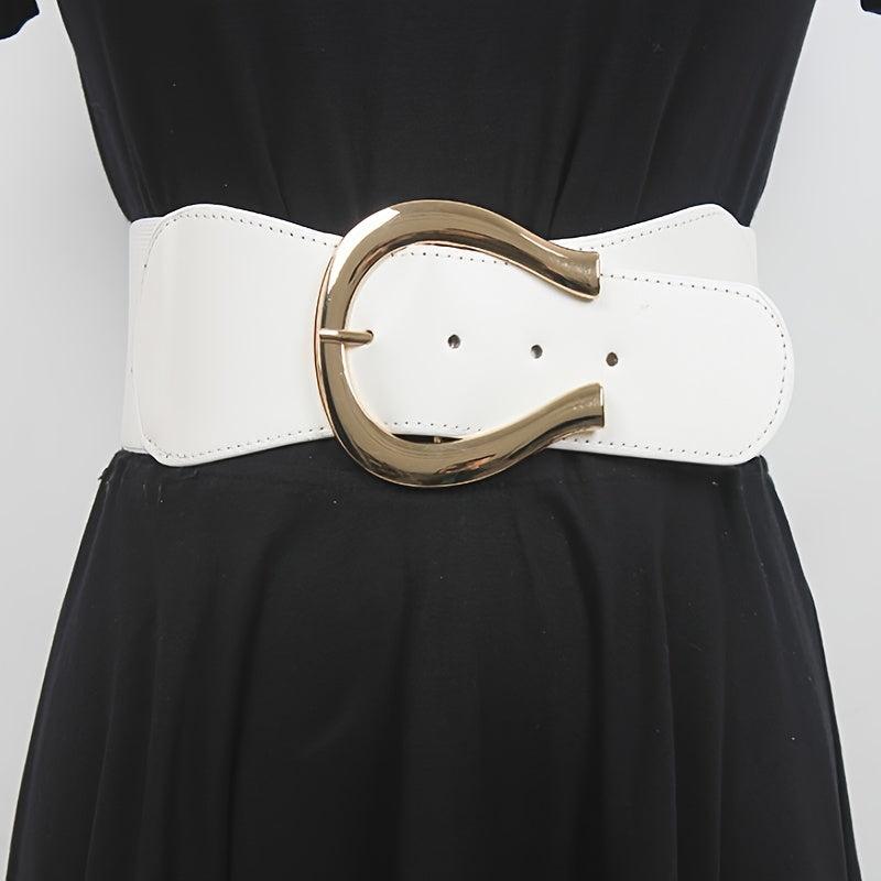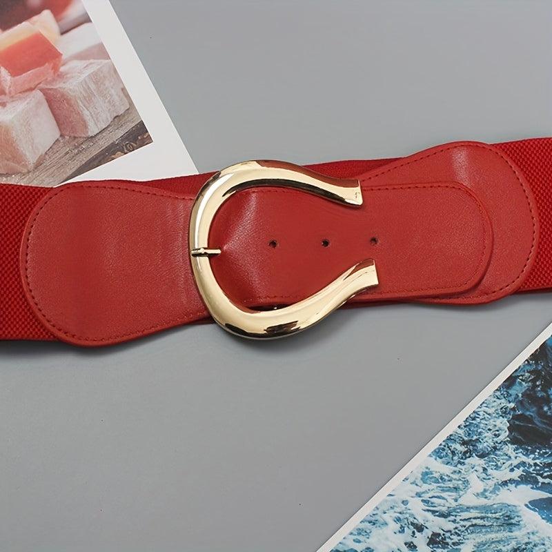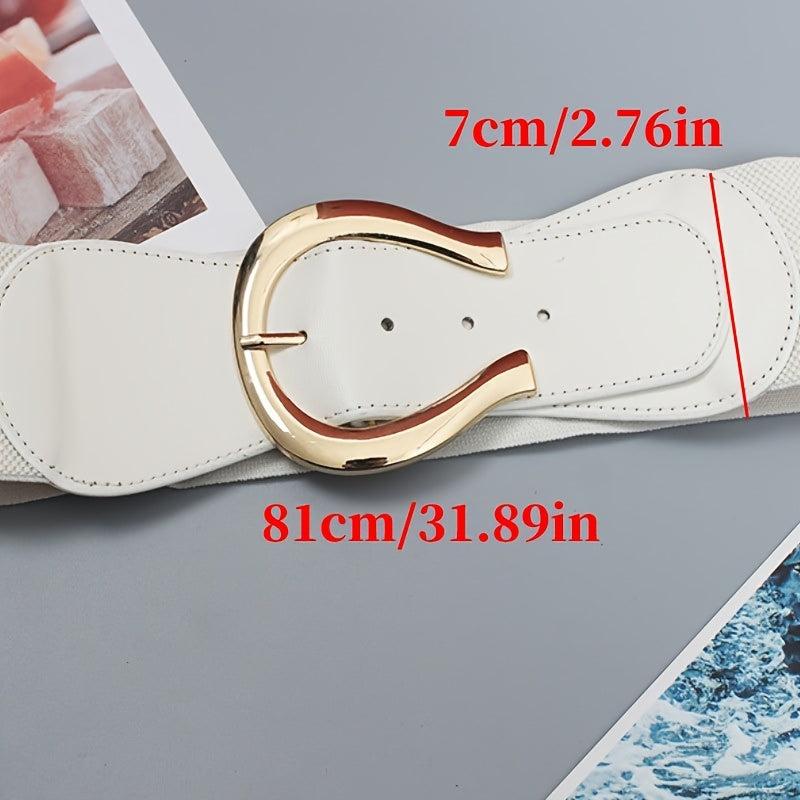 Add a touch of style to your outfits with this U-shaped metal buckle elastic waist belt. Perfect for both casual and formal attire, this belt is suitable for parties, college, and work.