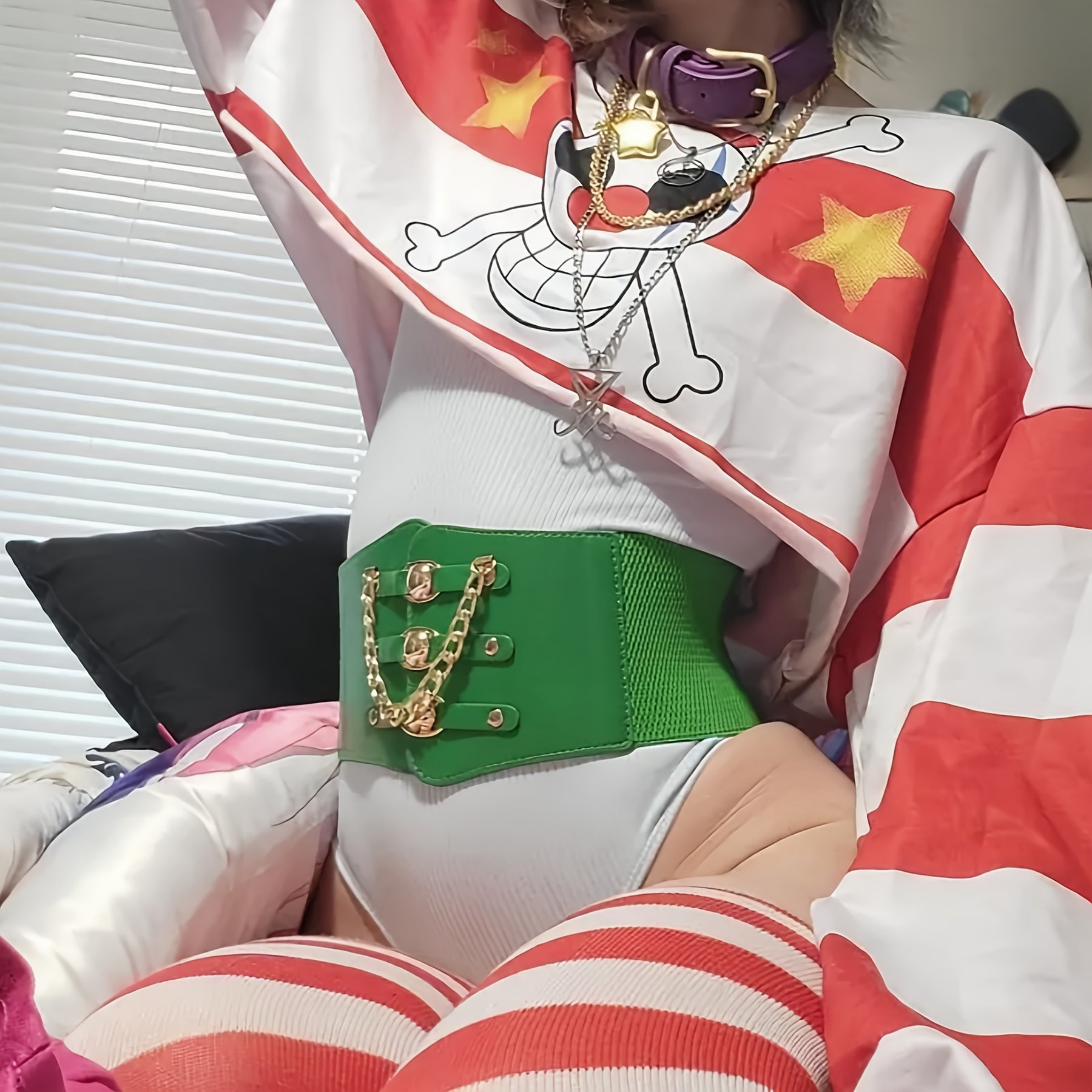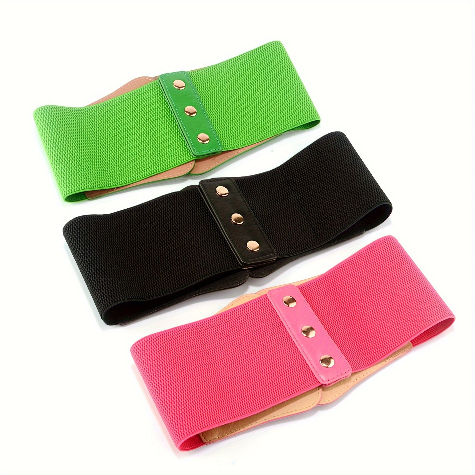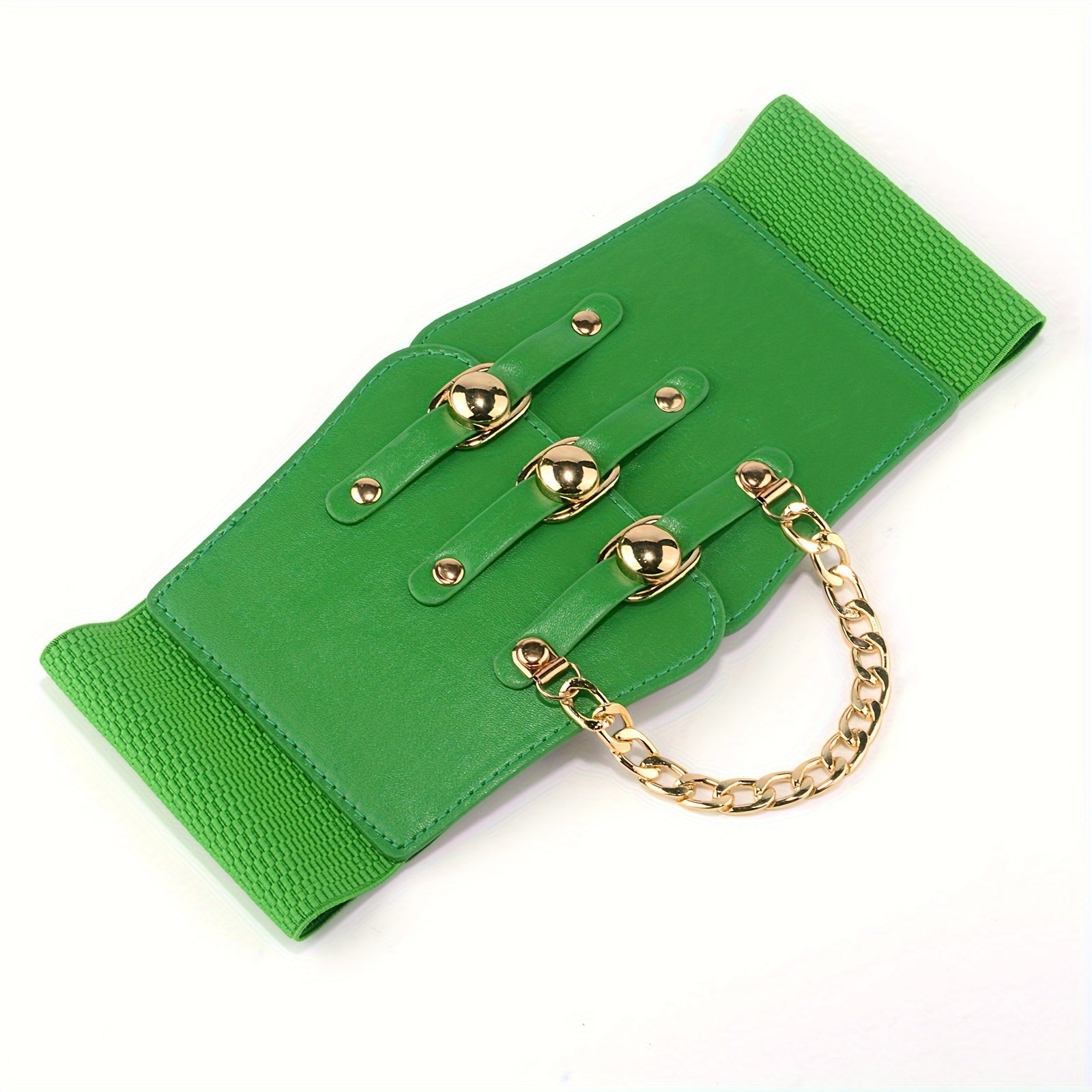 Add a touch of style to your outfits with this versatile wide belt featuring metal chain decoration. The elastic PU material provides a comfortable fit.