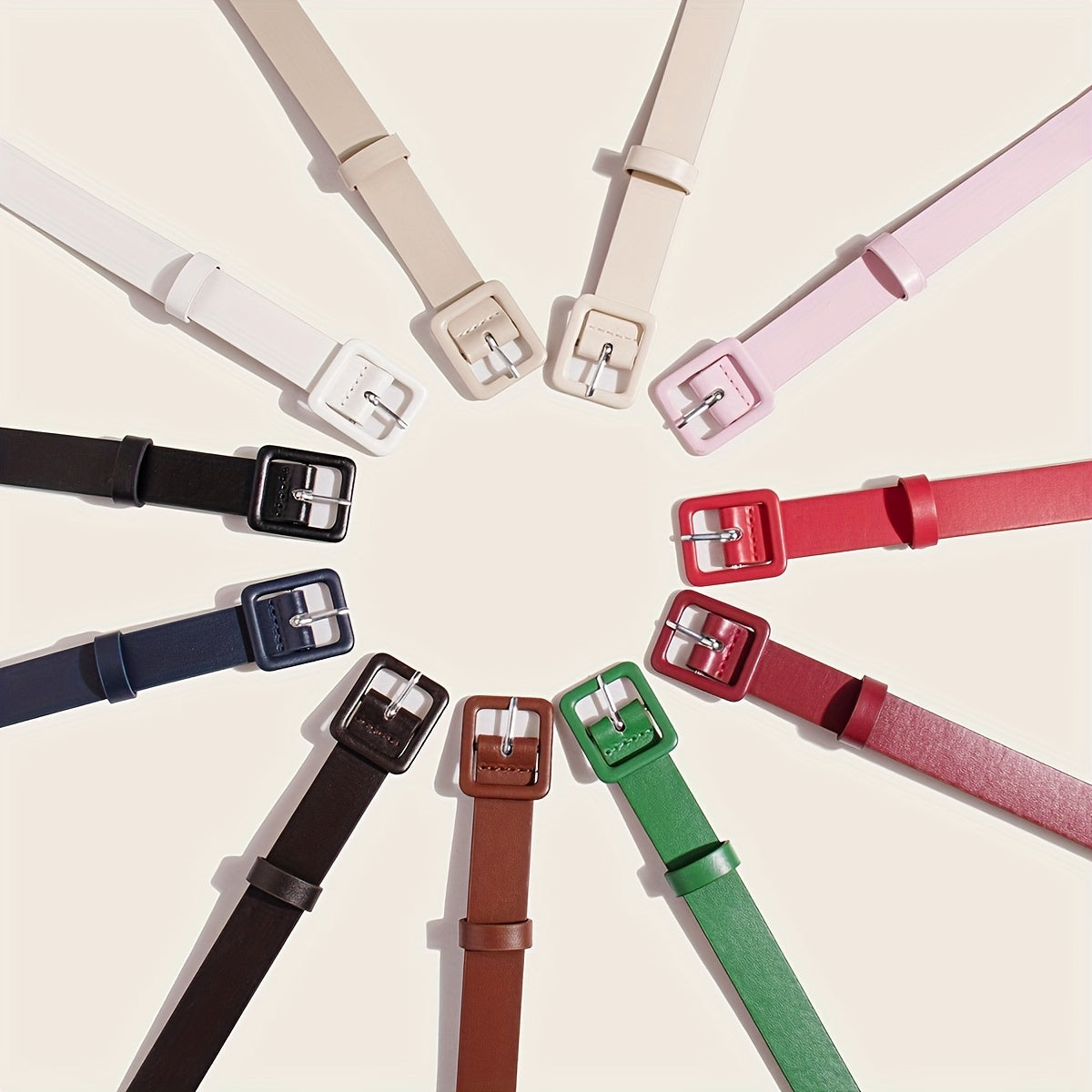 Add a stylish touch to your outfit with this small square buckle belt made of high-quality PU material. It's perfect for skirts and versatile looks.
