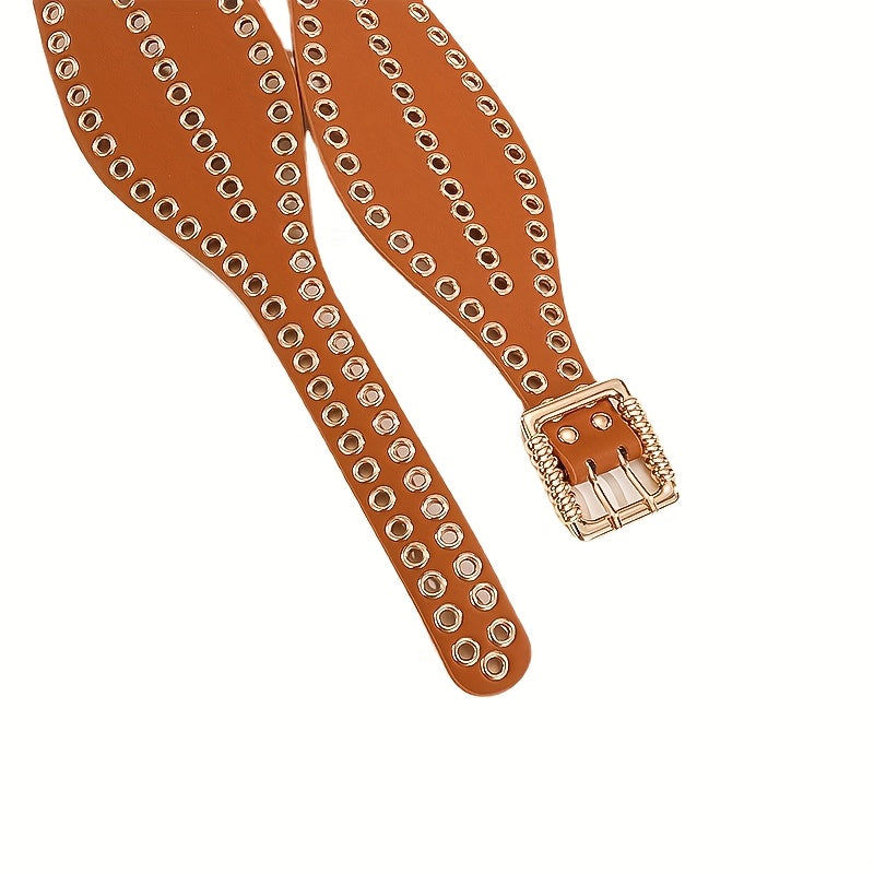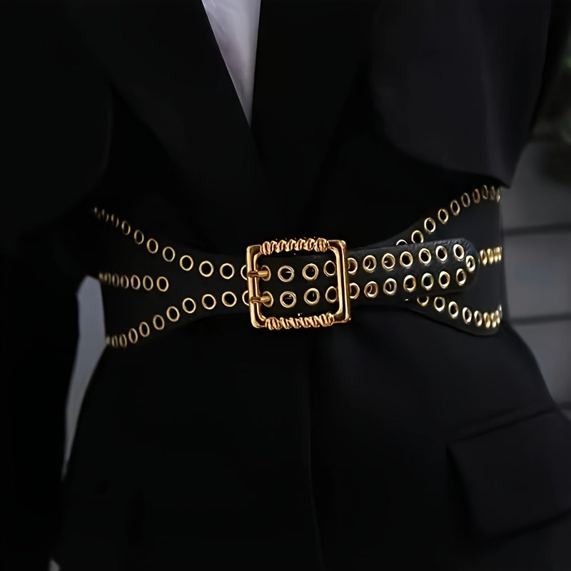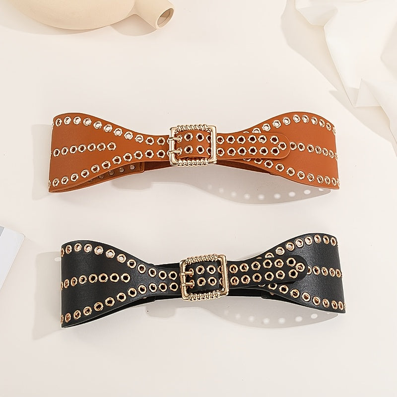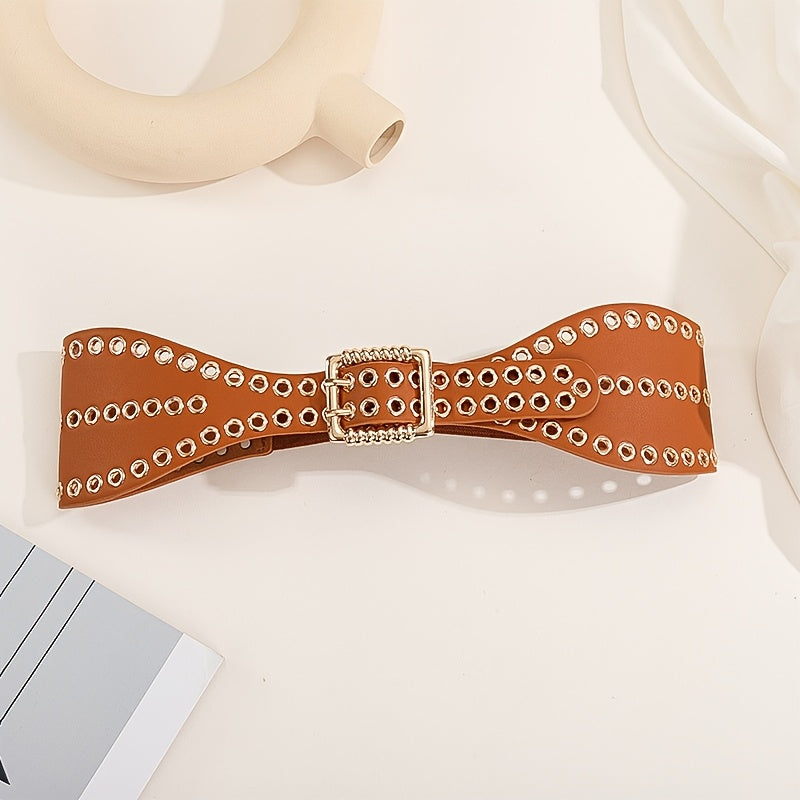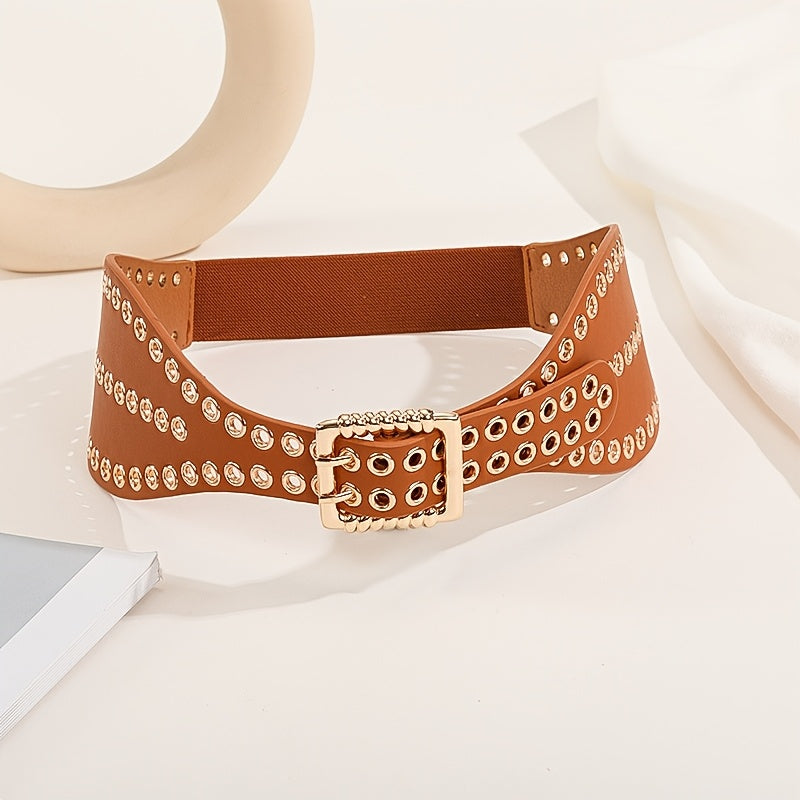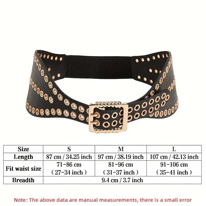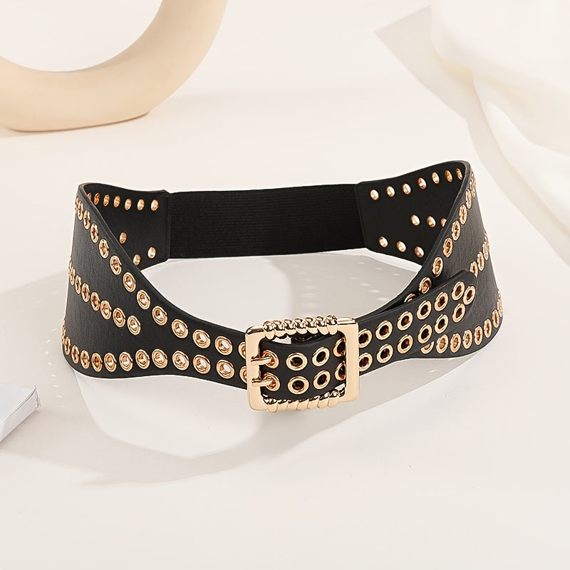Elastic waist belt designed for women's dress with a punk rivet waist wrap style, adding personality to your outfit.