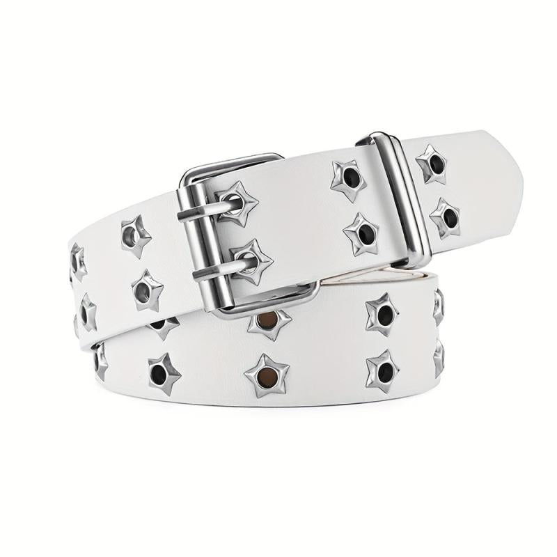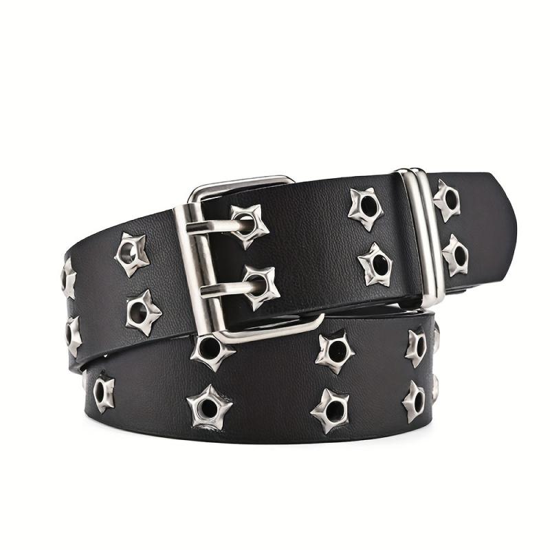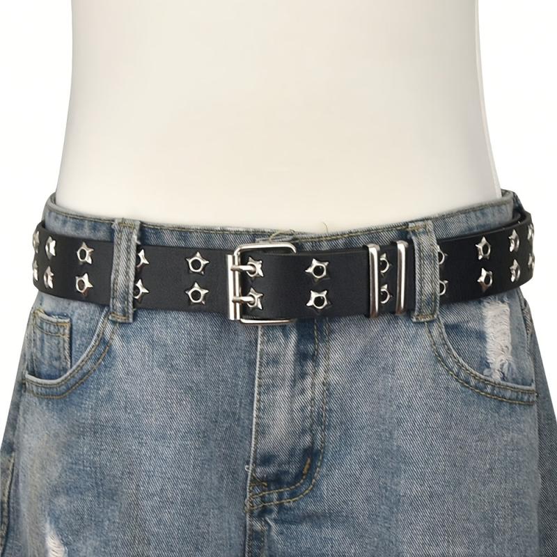 This punk style belt features no holes and air holes design, making it suitable for daily wear, commuting, and students. Made of faux leather, it offers a versatile accessory for both men and women.