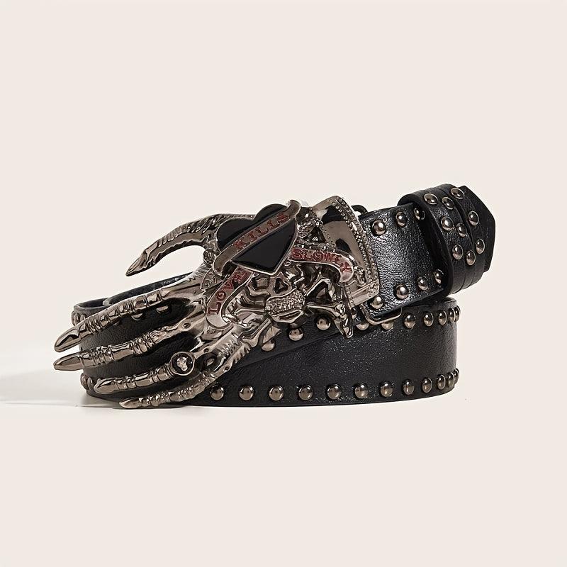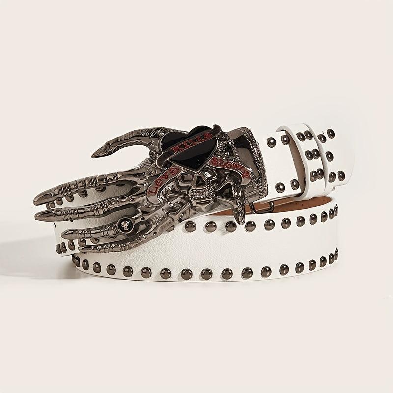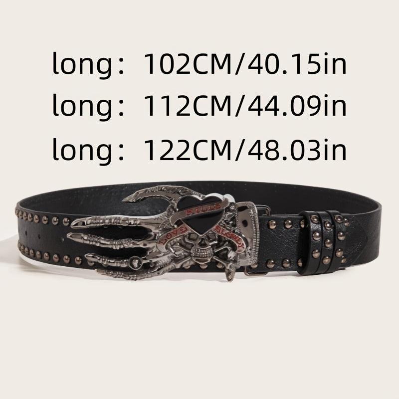 Add a touch of edgy style to your outfit with this punk women's belt featuring skull, heart, and palm designs. Made for casual wear, this belt is sure to make a statement.