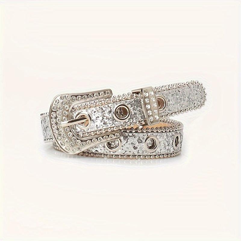 Add a touch of glamour to your outfit with this rhinestone pin buckle belt. Perfect for stylish and chic looks.