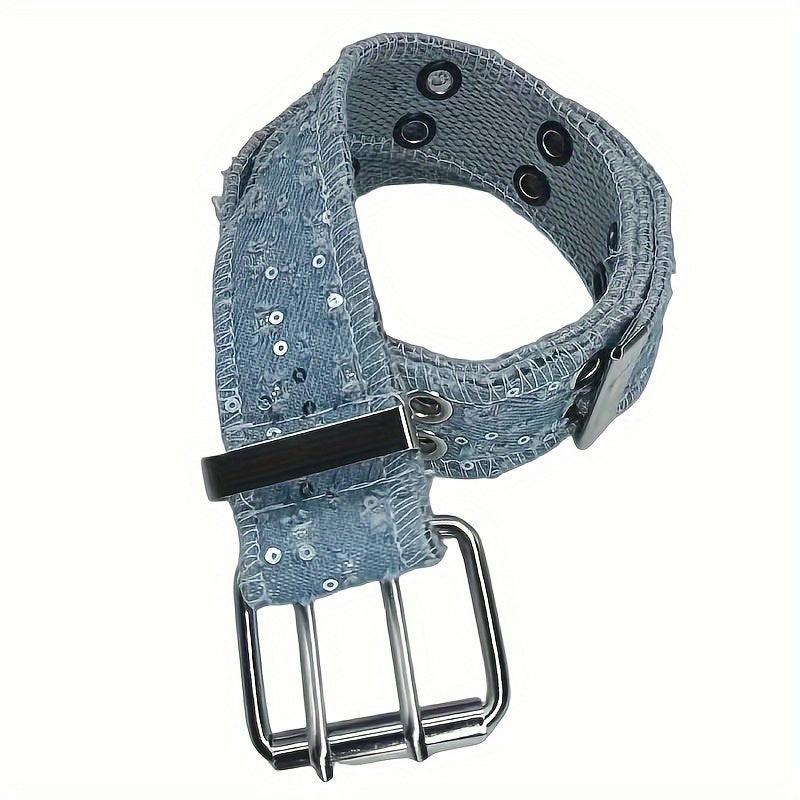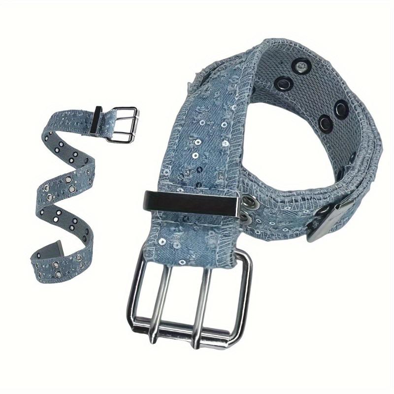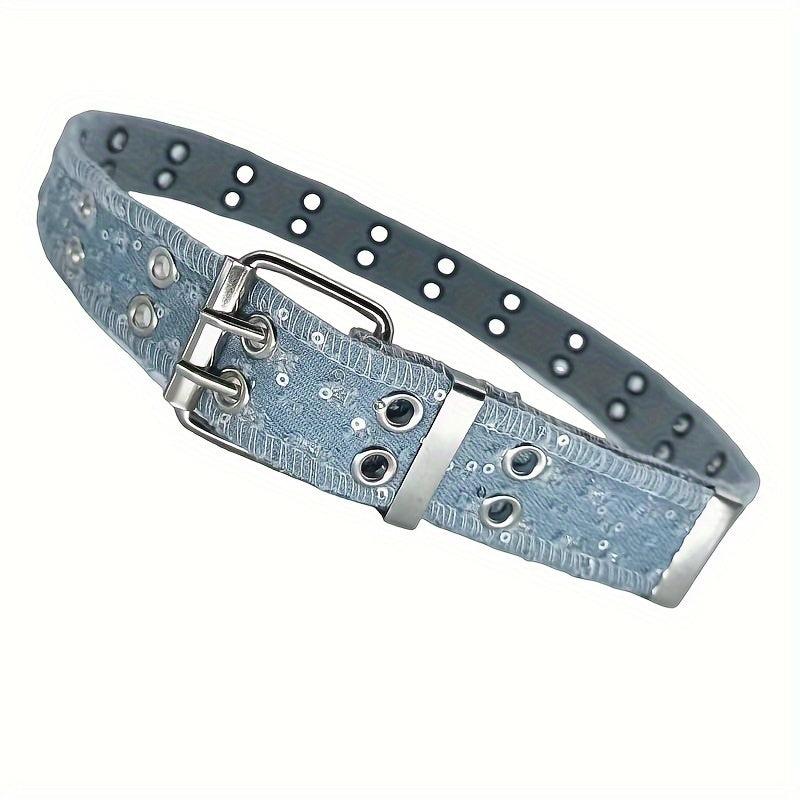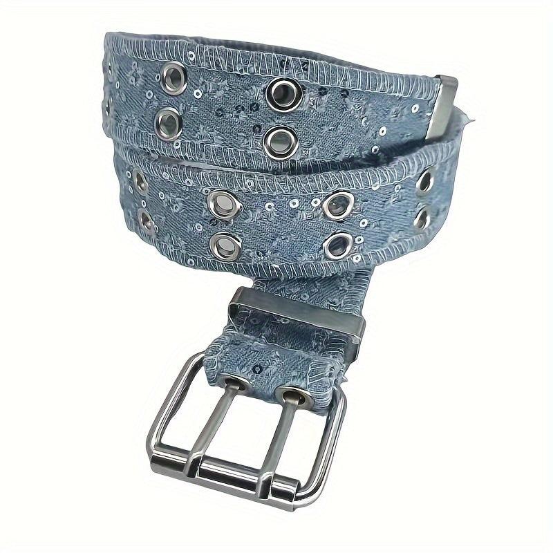 Add some hip-hop punk style to your outfit with this double needle stitched waistband featuring hole detail and sequins. Perfect for versatile jeans.