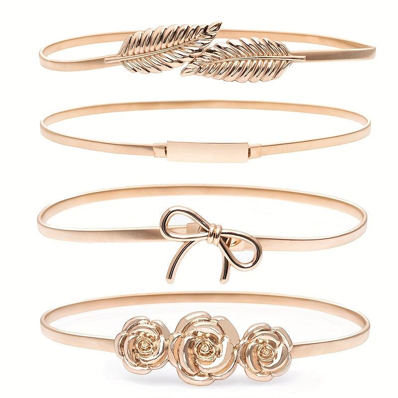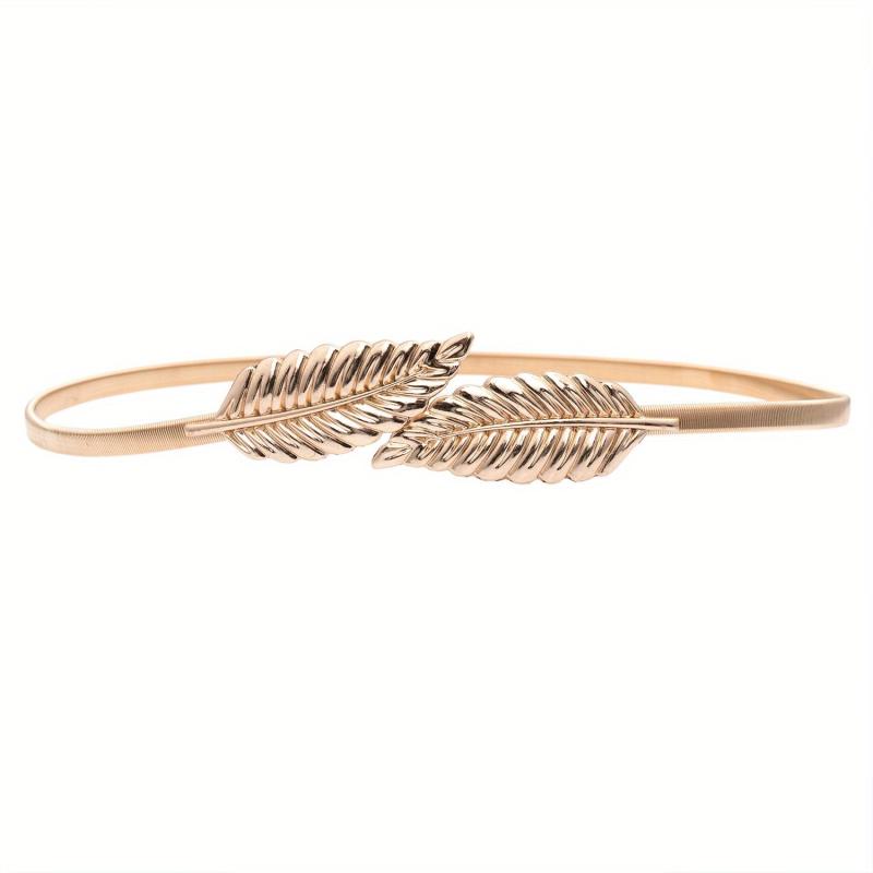 Add a touch of elegance to your outfit with this stretchy silvery leaf metal belt. Perfect for both casual and party wear.