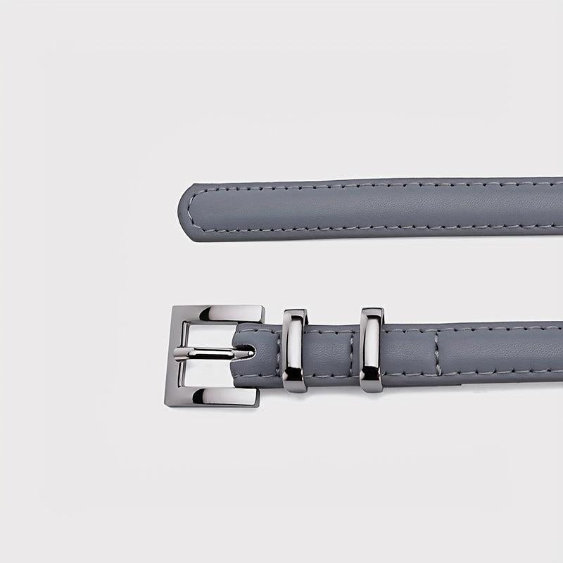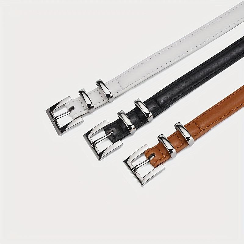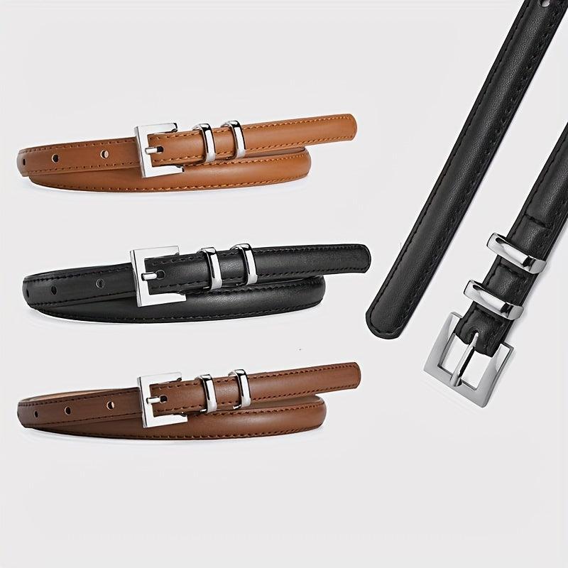 Add a touch of elegance to your outfit with this sleek and versatile PU leather thin belt. Perfect for daily wear or special occasions, this belt is a stylish addition to any wardrobe.