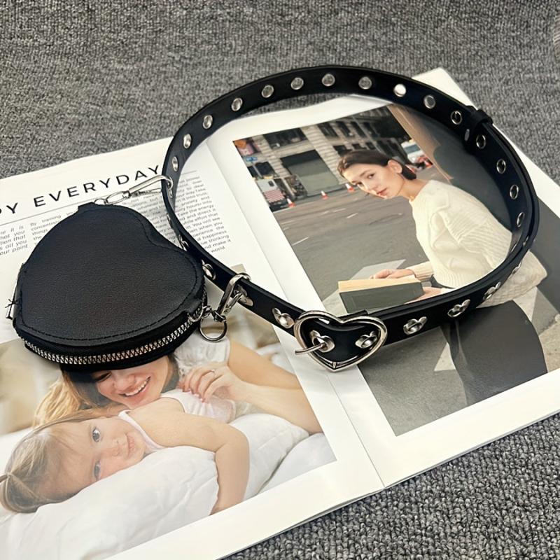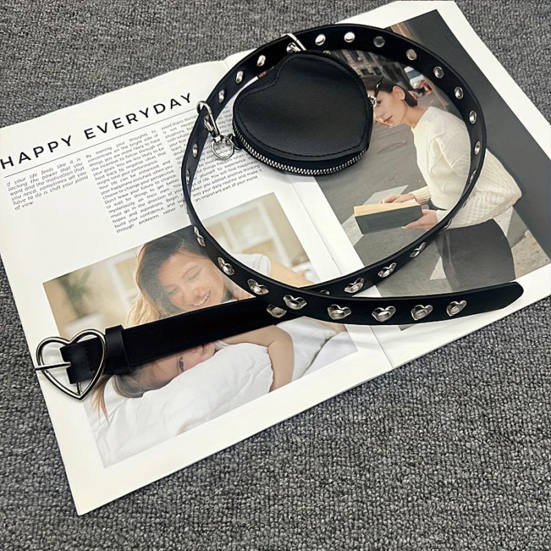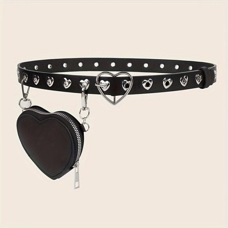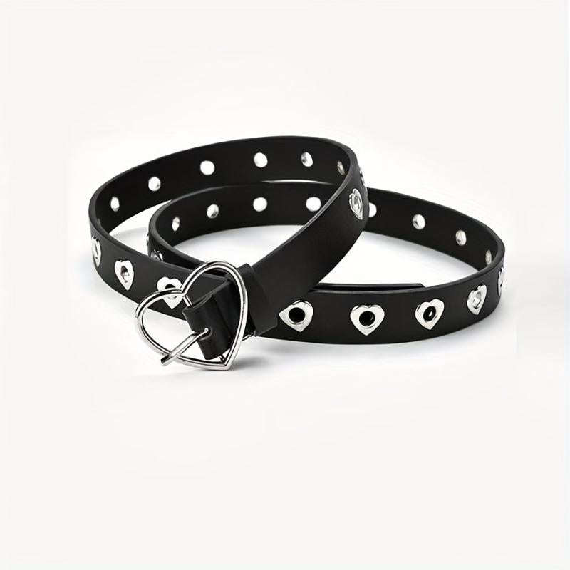 Add a punk edge to your look with this studded heart buckle belt. Perfect for casual or college wear, this hip hop accessory fits all sizes.