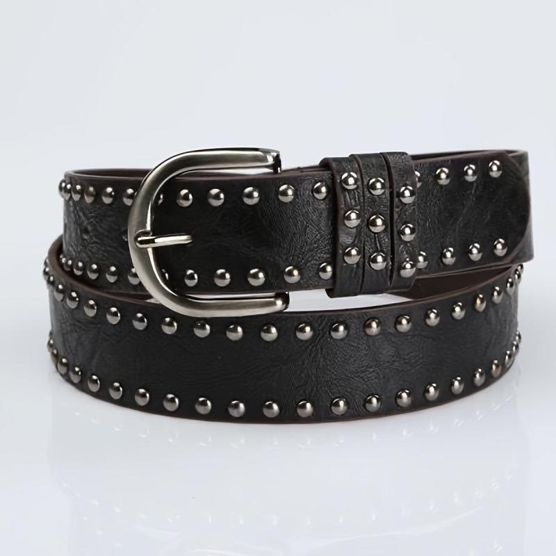 Elevate your outfit with this stylish women's belt featuring a creative studded D ring buckle. Crafted with high-quality materials, this belt is both fashionable and durable.