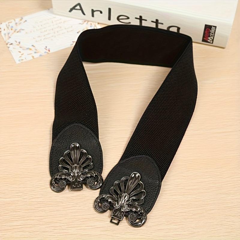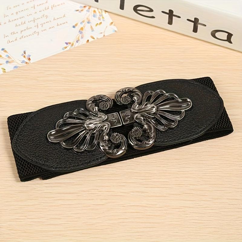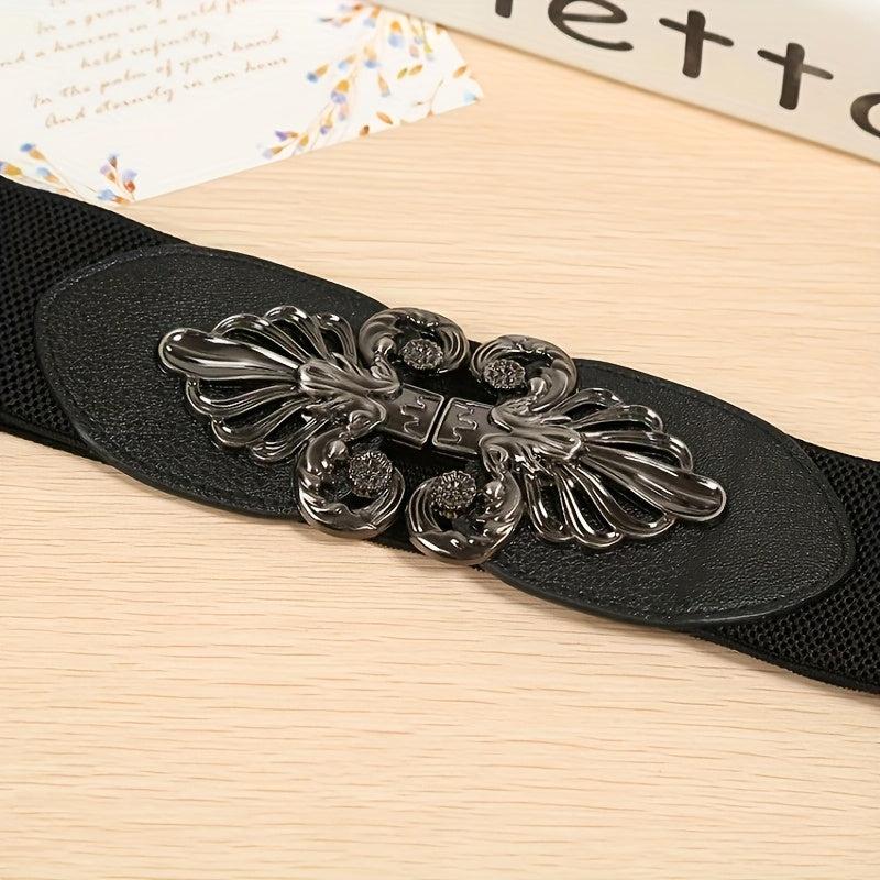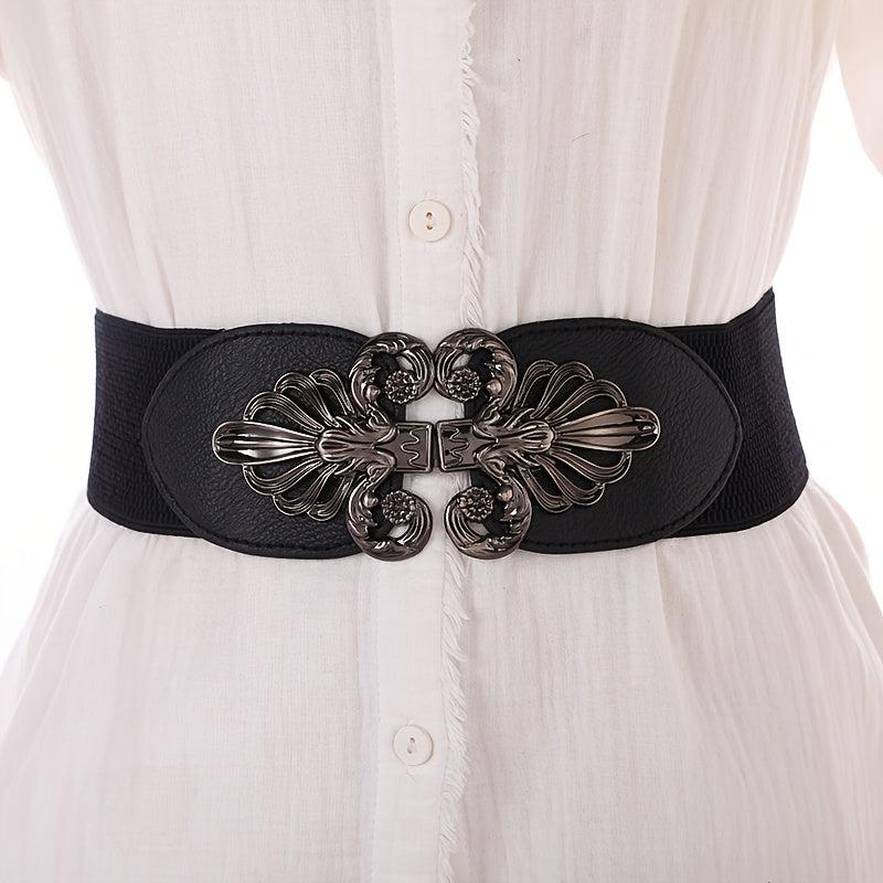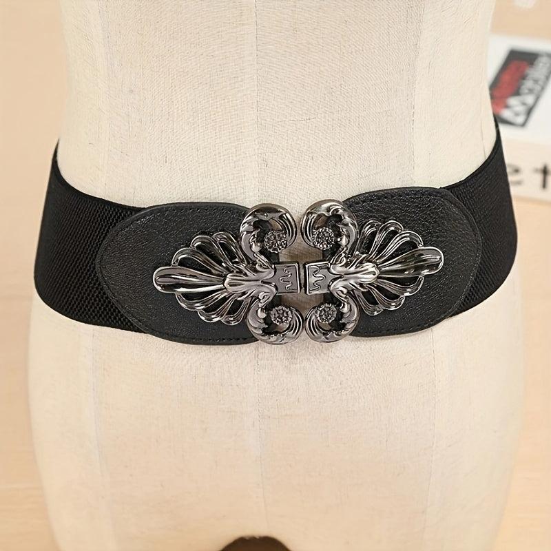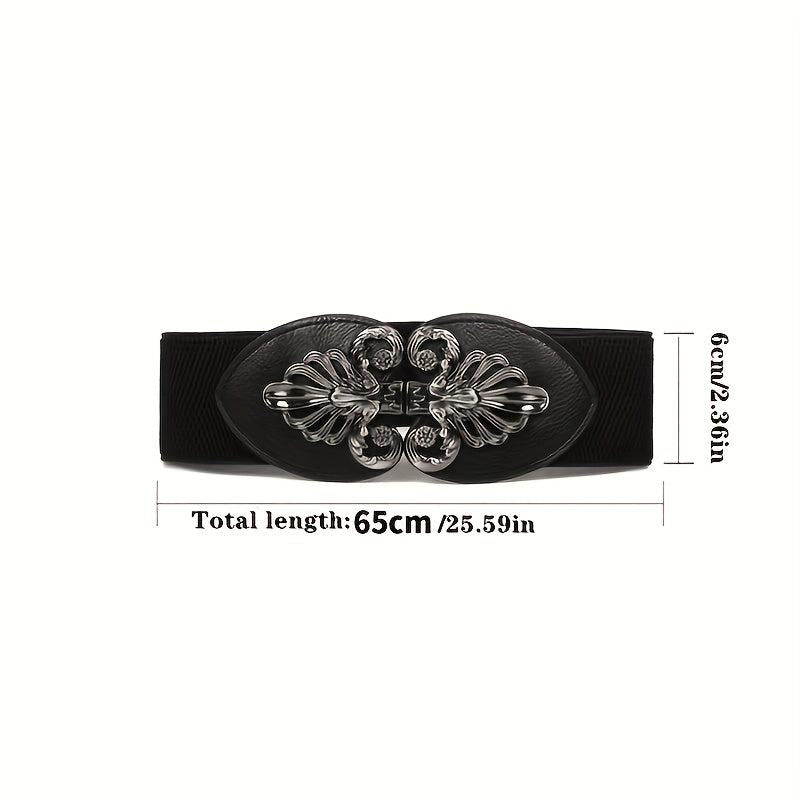 Upgrade your outfit with this stylish elastic waist belt featuring a floral metallic buckle. It's adjustable and perfect for casual or business wear all year round.