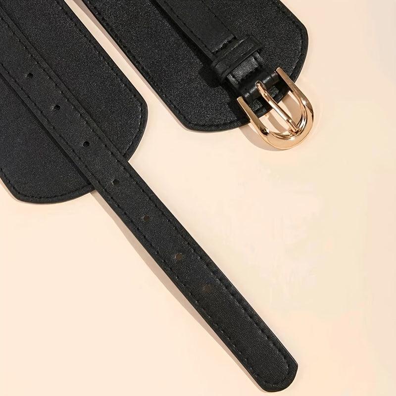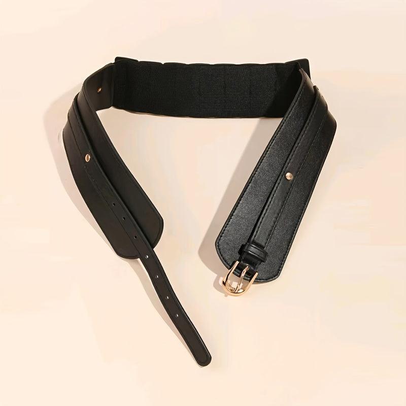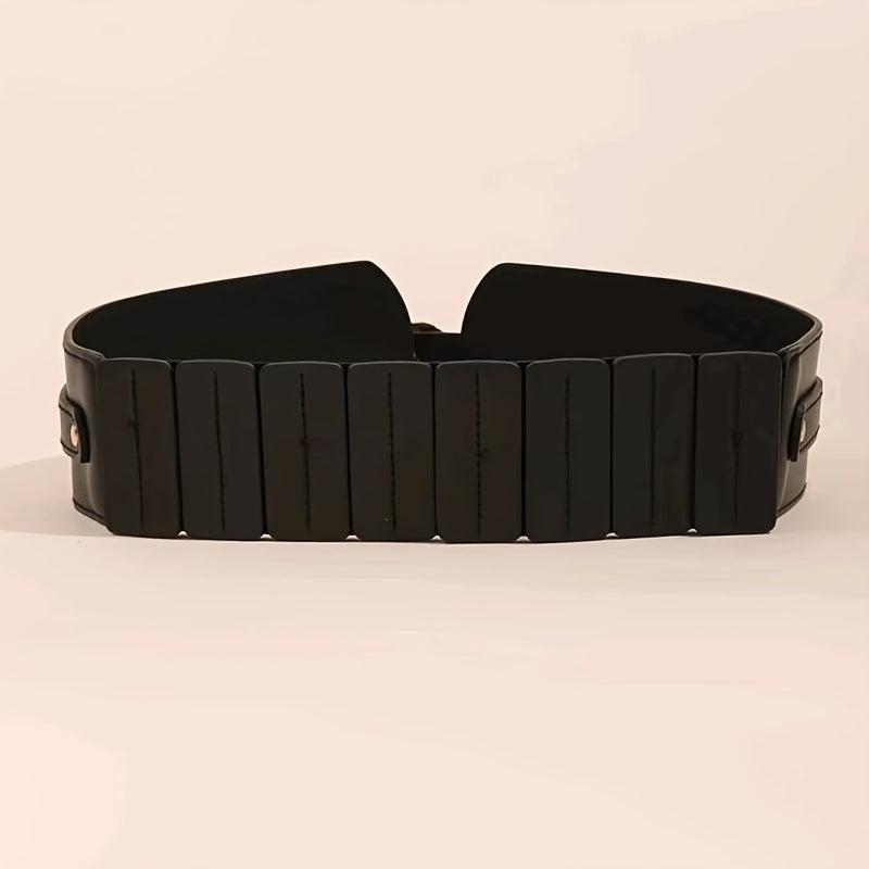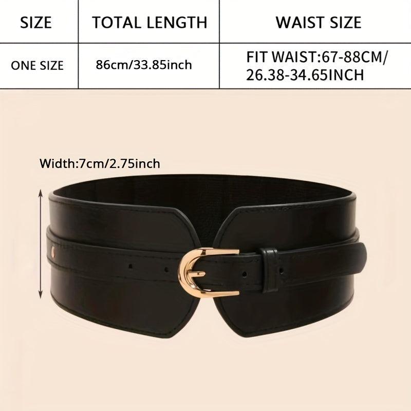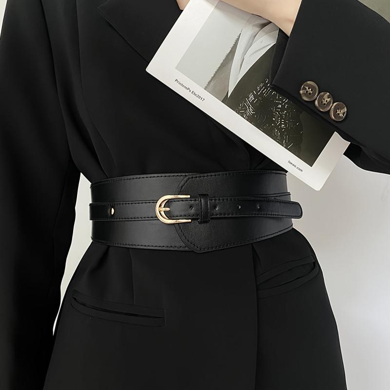 This versatile belt is a perfect accessory for dresses, coats, and casual outfits. It features a wide design and elastic material for a comfortable fit.