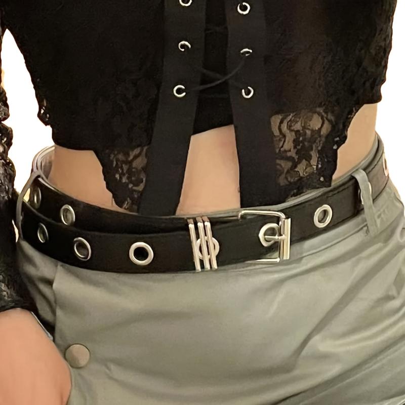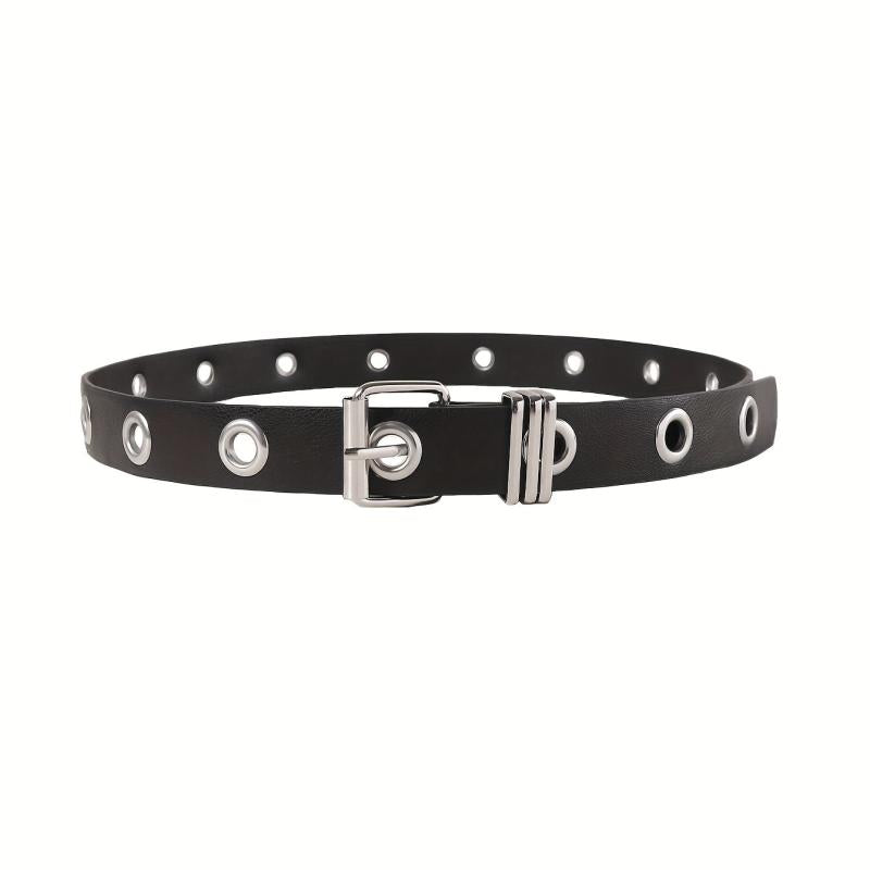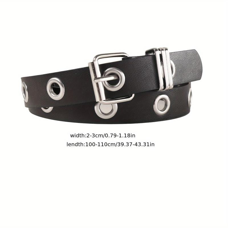 Add some edge to your outfit with this punk-inspired PU belt featuring metal grommets and an adjustable buckle. Perfect for casual wear, nights out, and everyday commutes.