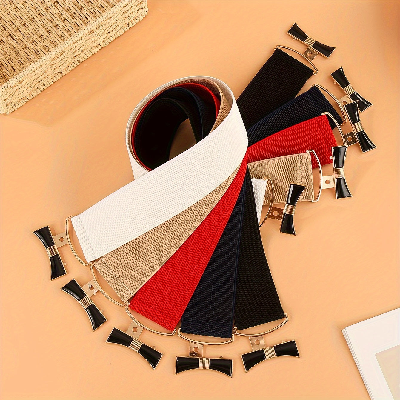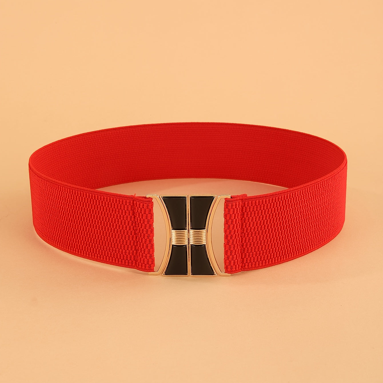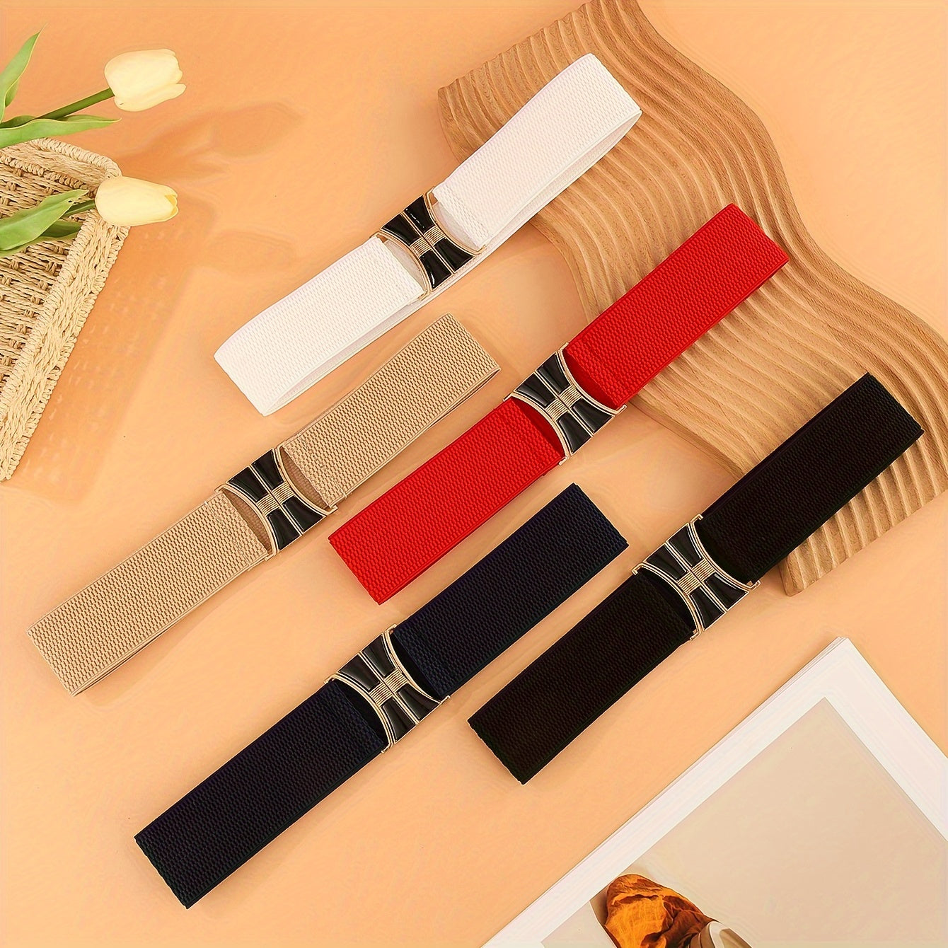 Women's Stretchy Elastic Waist Belt in Beige Red Navy