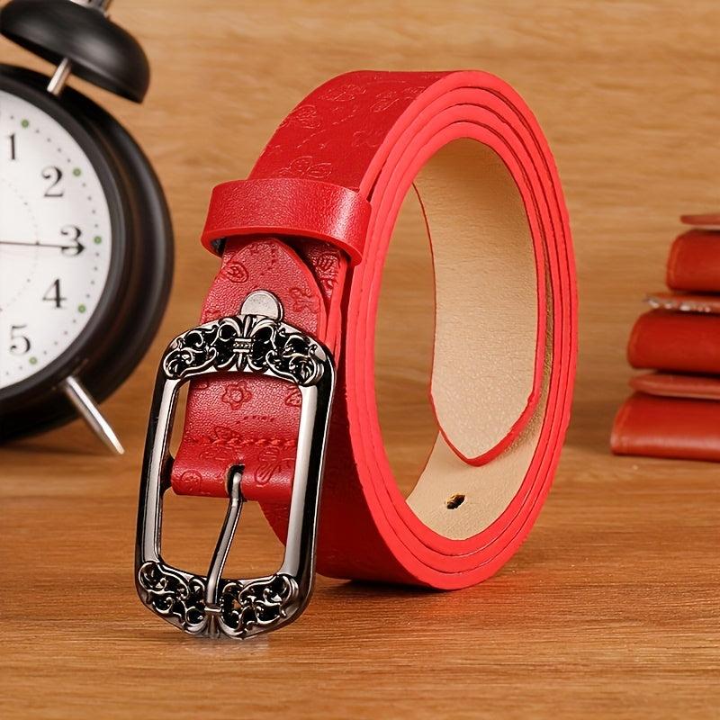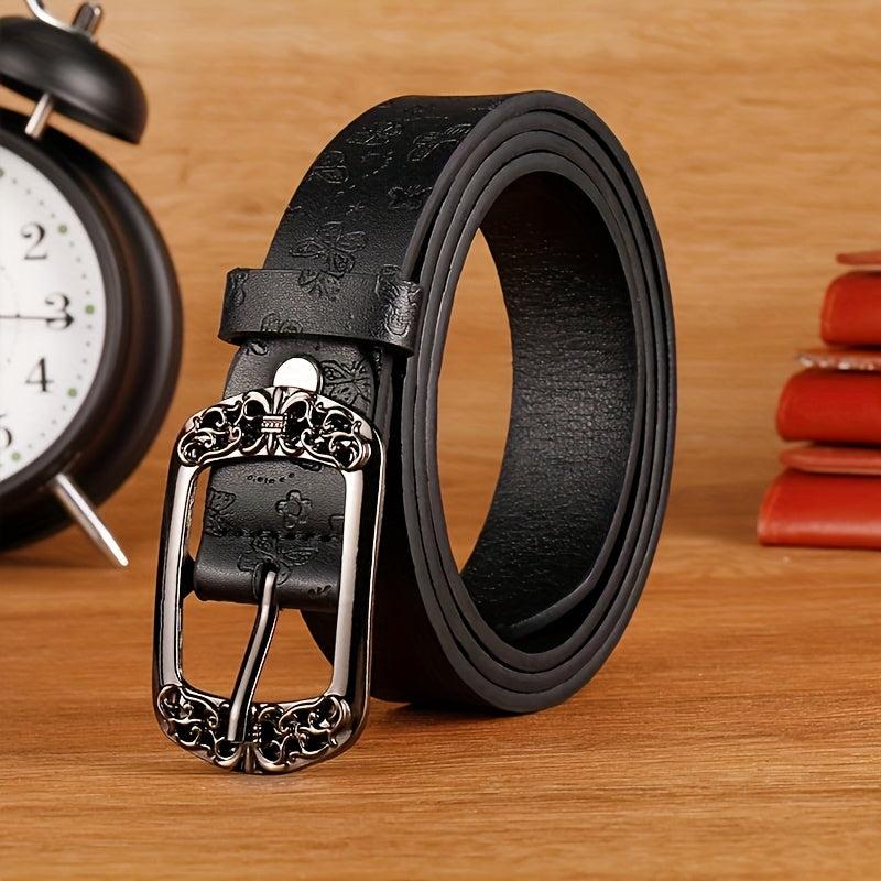 Elevate your weekend casual look with this stylish faux leather belt featuring intricate floral patterns. Perfect for pairing with jeans or dresses.