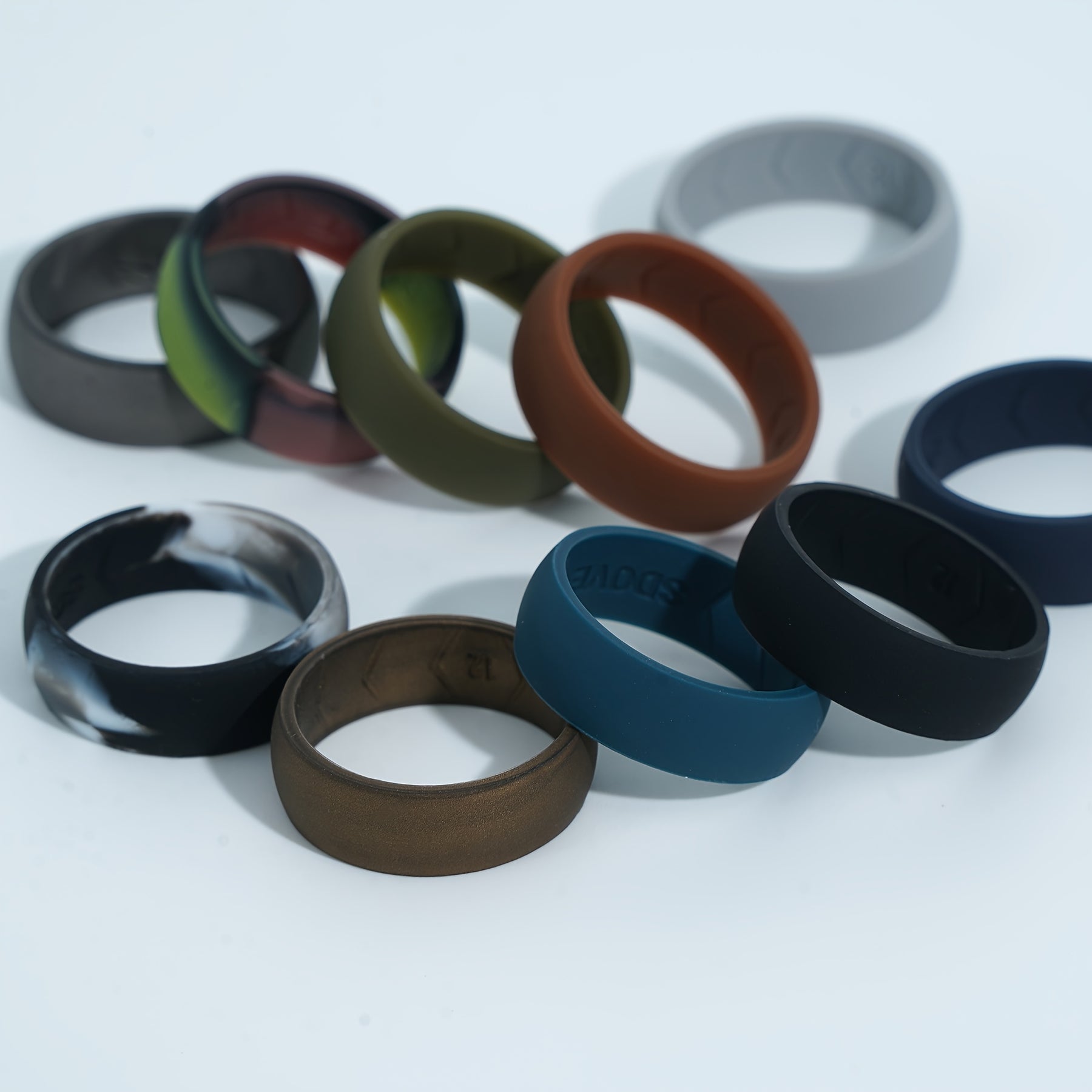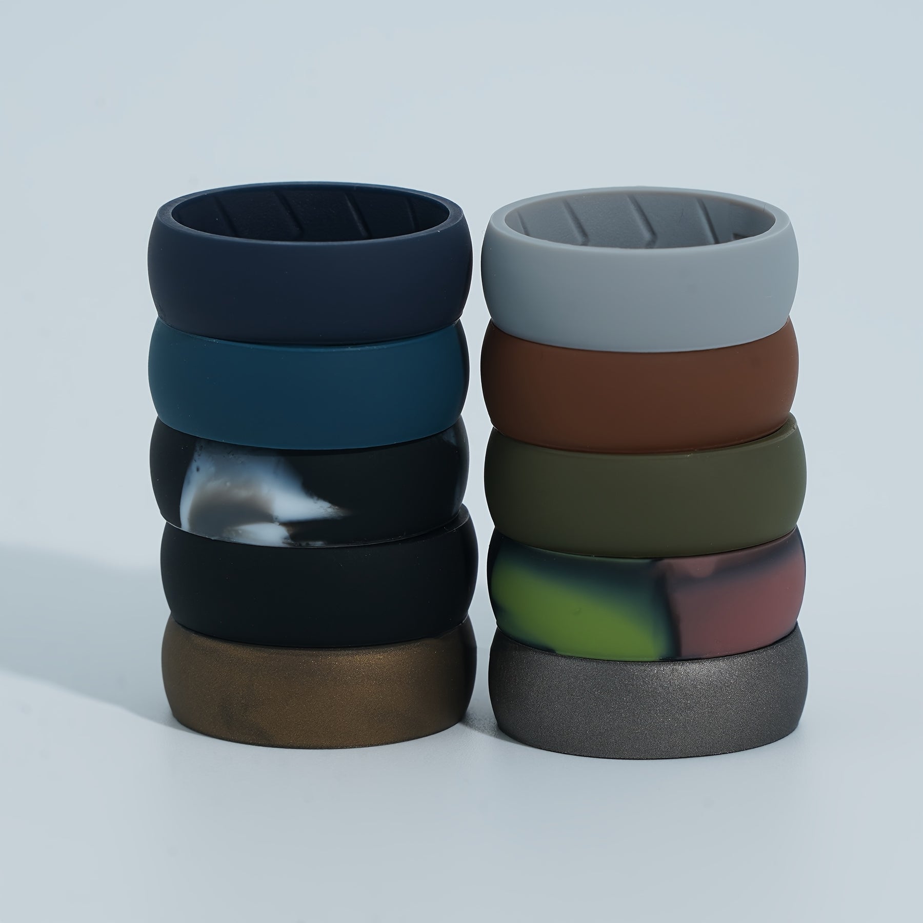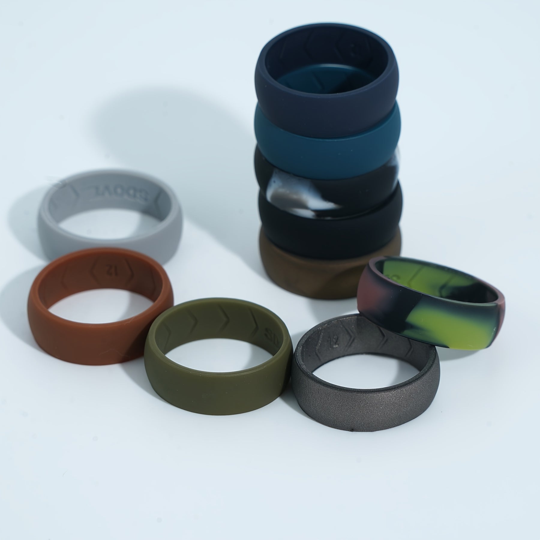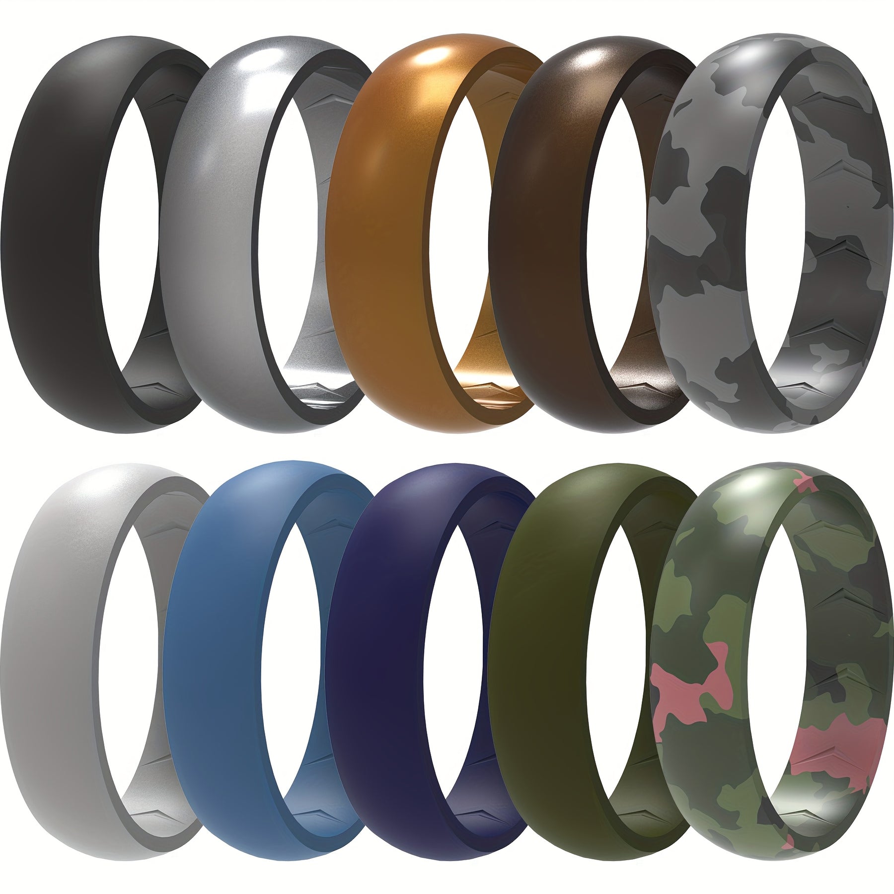 10 Paks Men's Silicone Ring, Air Flow Groove Rubber Wedding Ring 8.5mm Wide